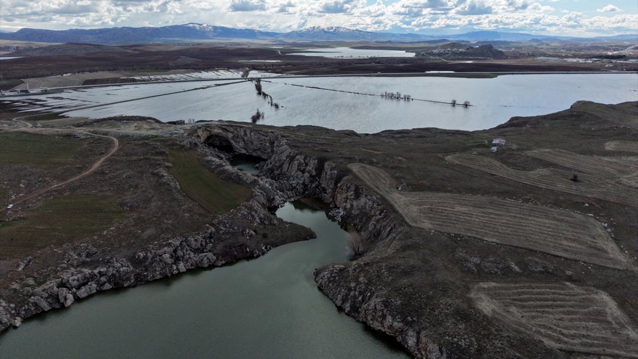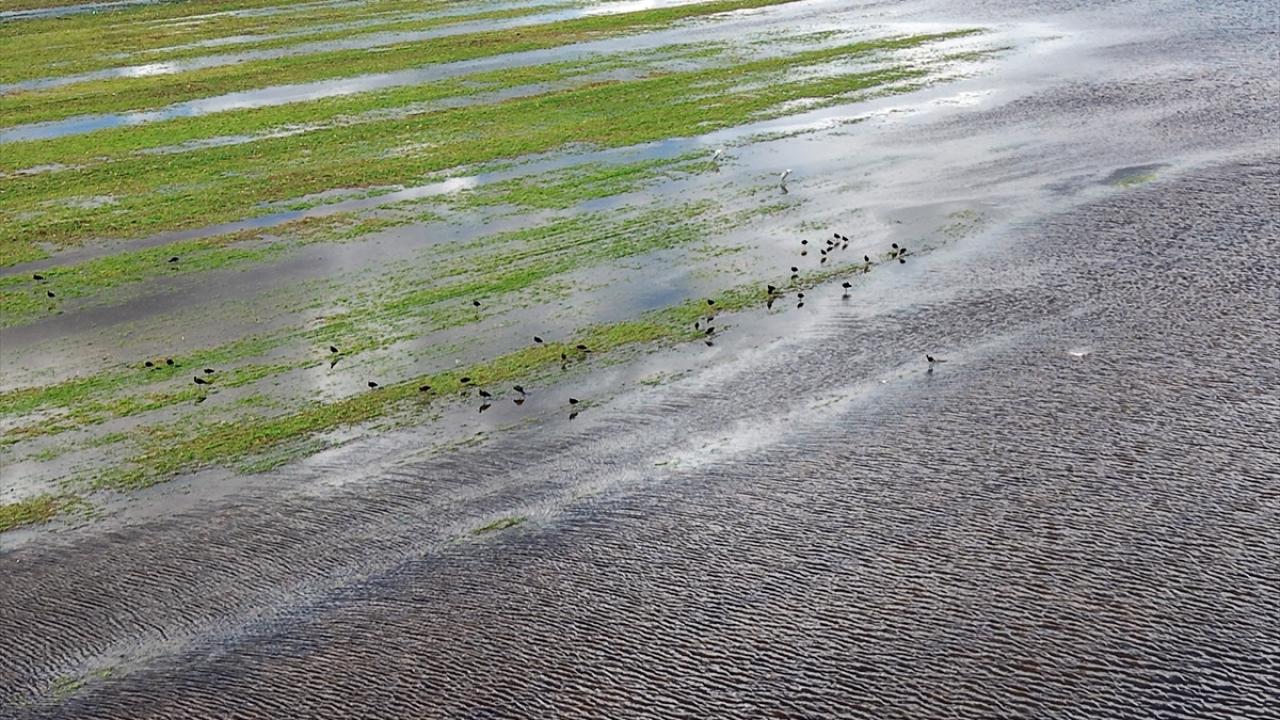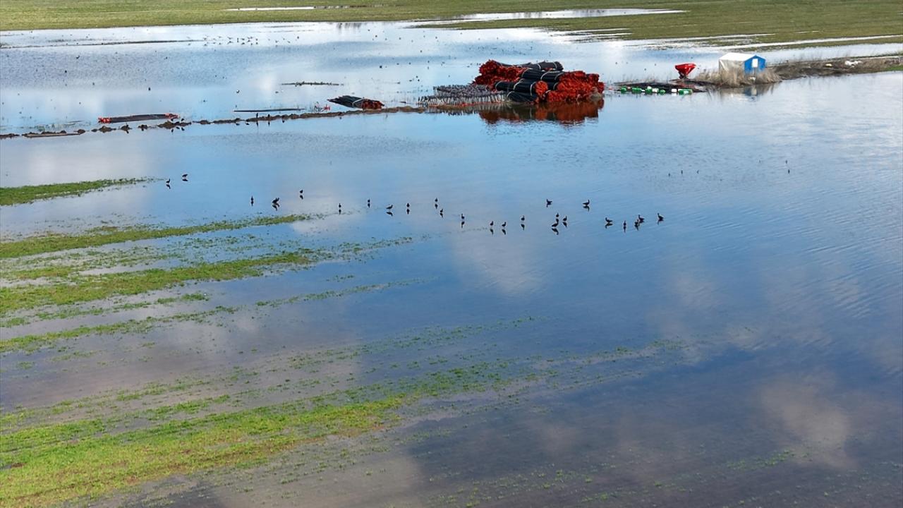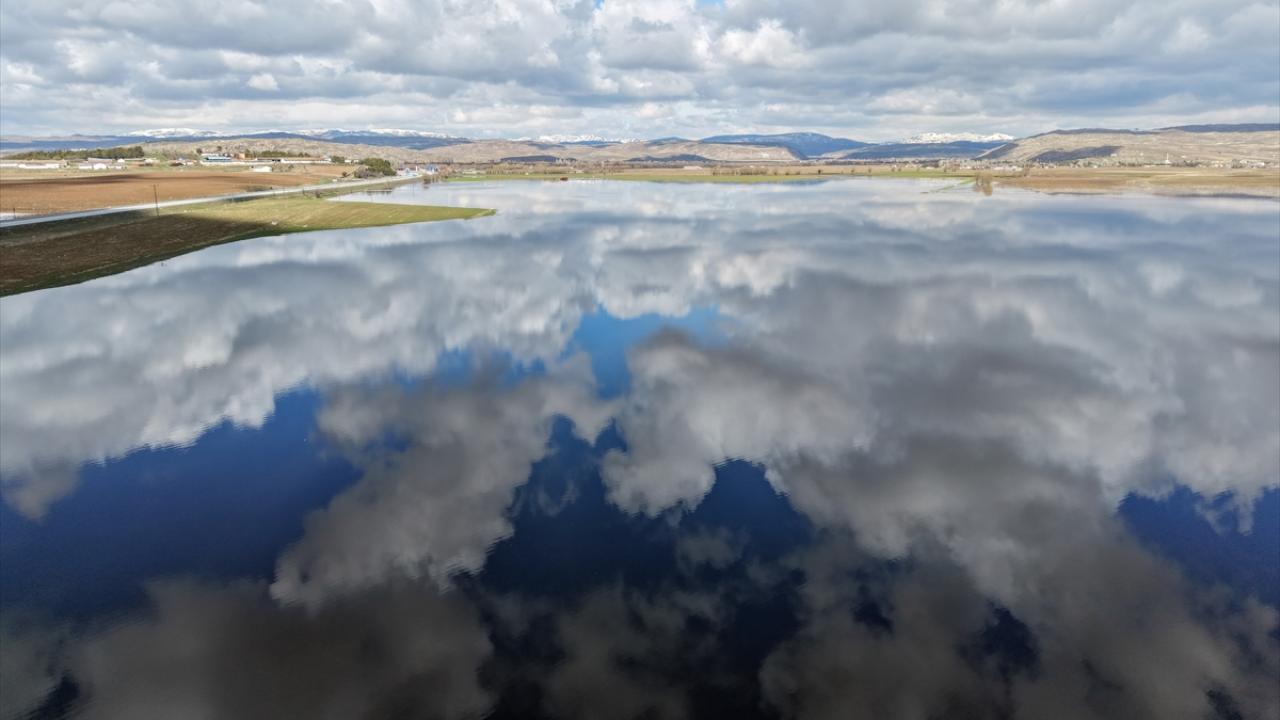 Sivas'ta tarım alanlarında yağışla oluşan su birikintileri havadan görüntülendi