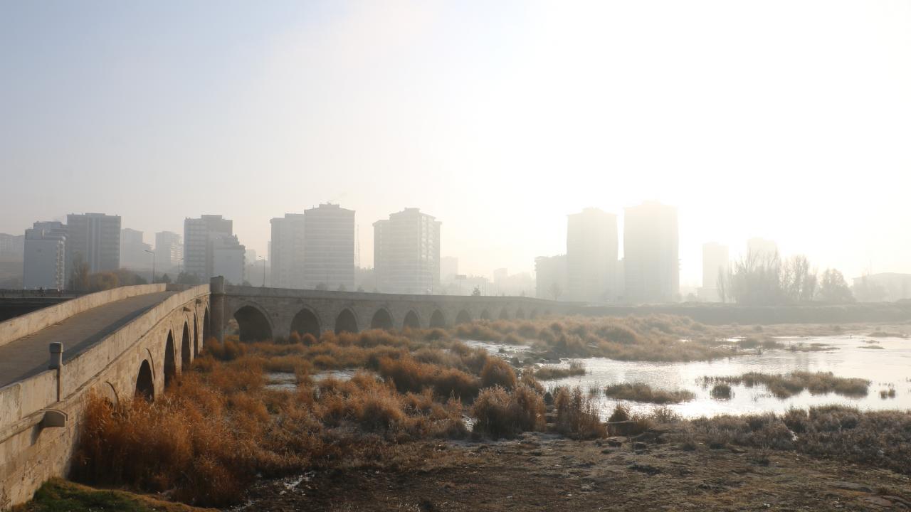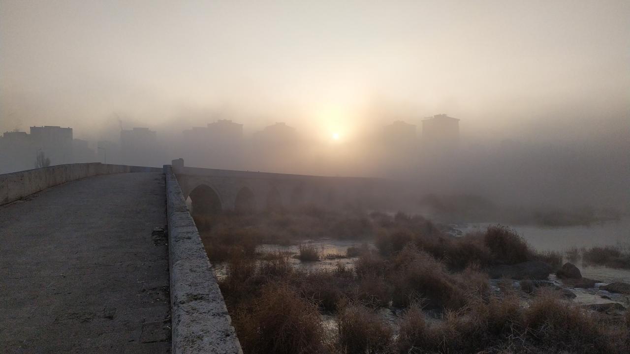 Tarihi eğri köprünün altından geçen Kızılırmak’tan yükseler su buharı izlemeye doyulmayan manzaralar oluşturdu.