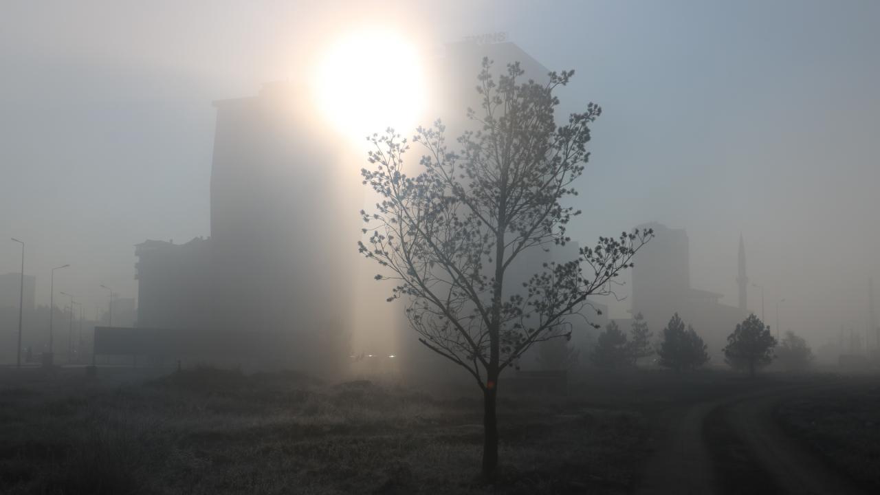 Açık alanlar adeta kar yağmışçasına beyaza büründü. Koca binalar sisin içerisinde kayboldu.