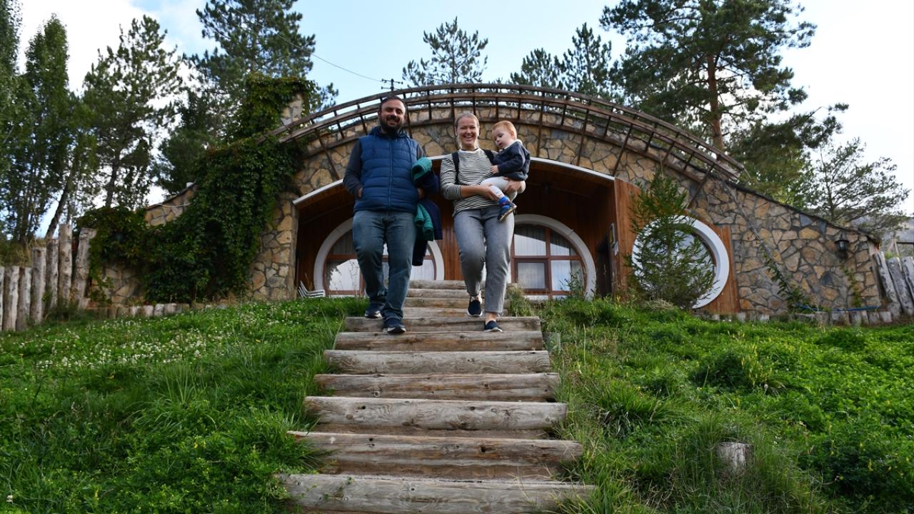 Belarus`tan gelen Yanina Rouda, "Önceden `Yüzüklerin Efendisi` filmini izledik. Onunla ilgili olduğu için diğer konaklama yerlerine hiç bakmadık ve burayı tercih ettik. Burada doğayla iç içeyiz, tavuklar, tavşanlar var. Çok farklı bir ortam, çok mutluyum. Havası çok temiz, evler sıcak." dedi.