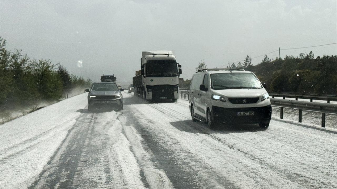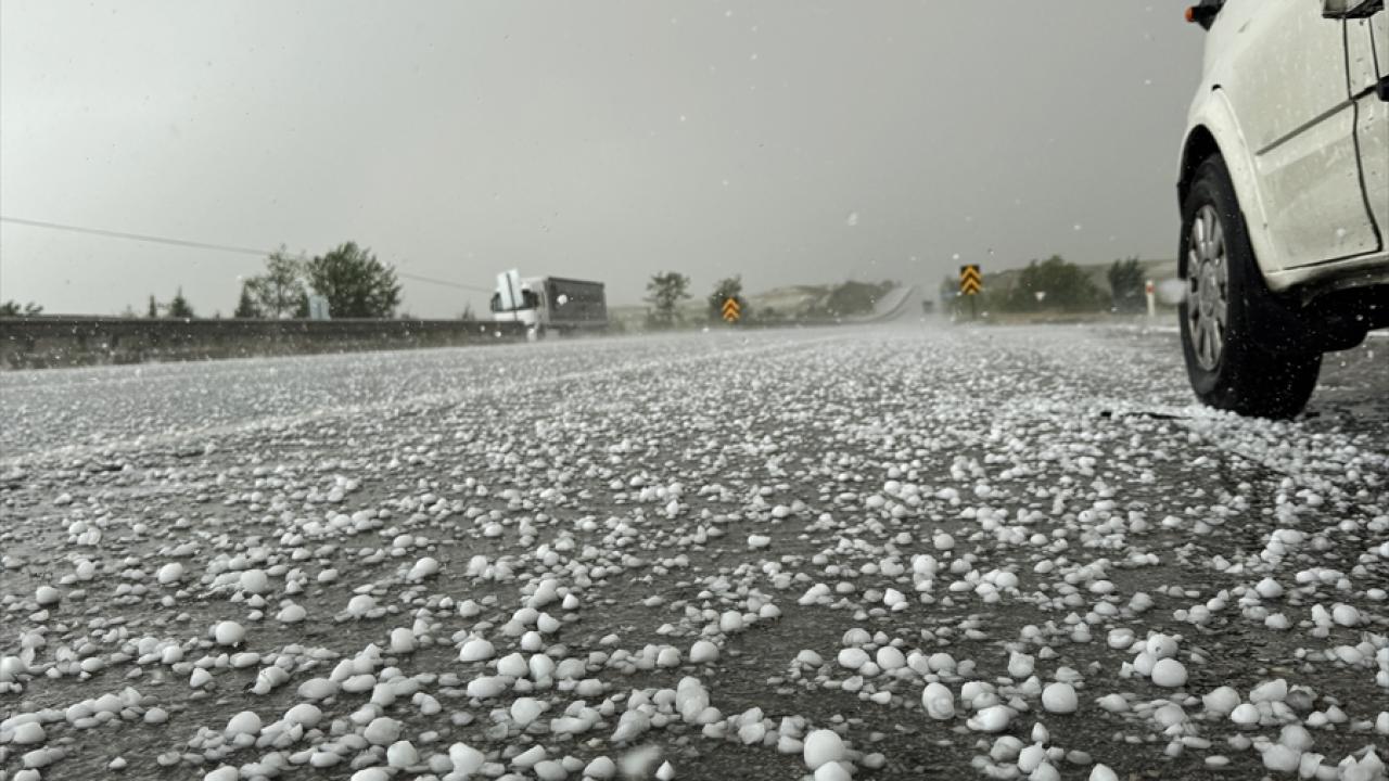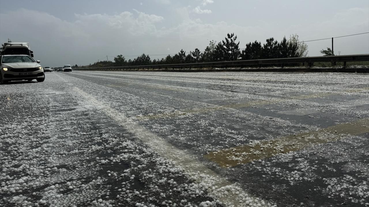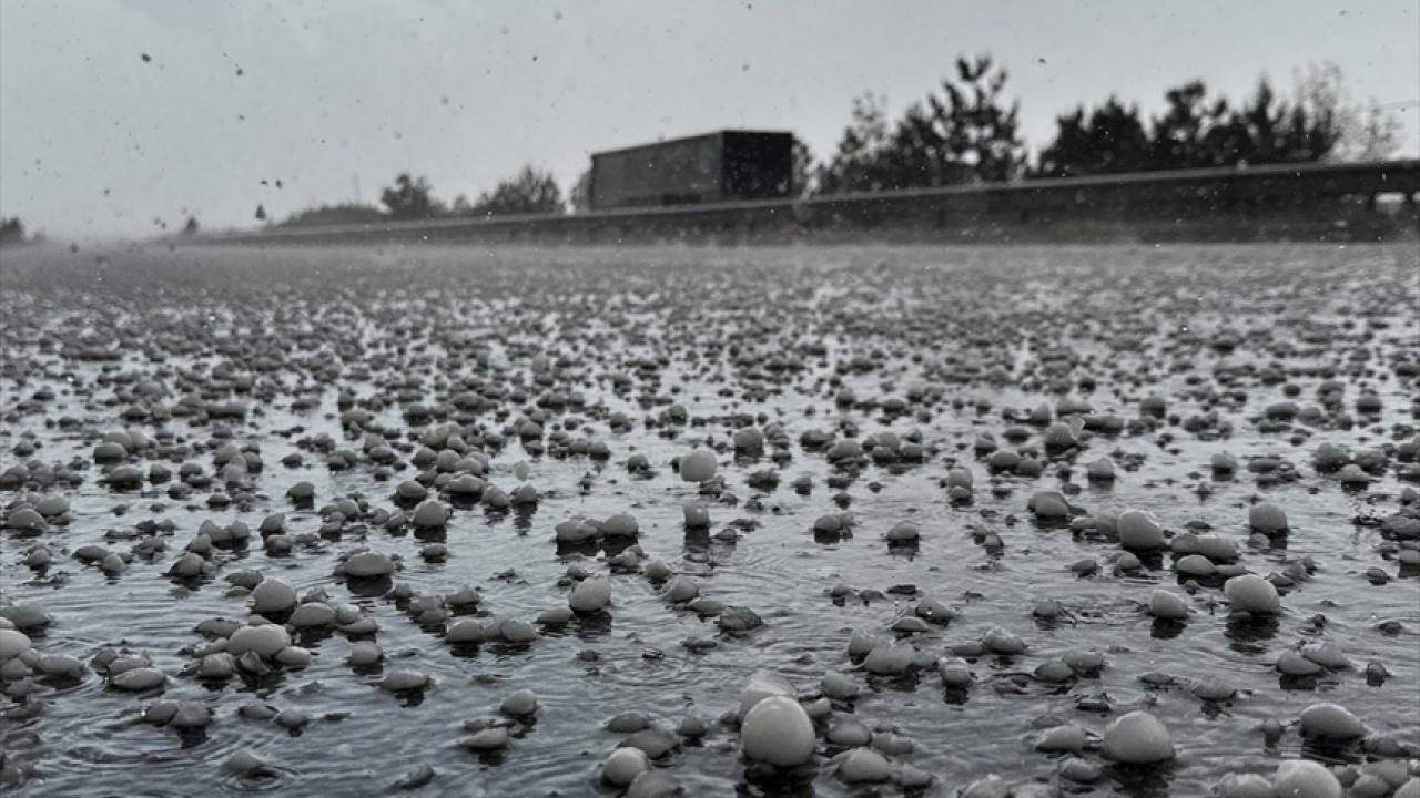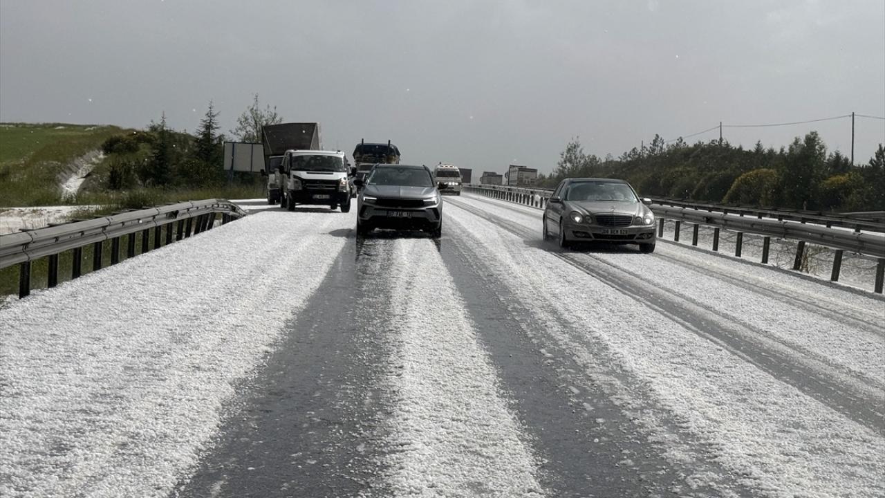 Yaklaşık yarım saat etkili olan dolunun ardından devam eden sağanak nedeniyle yollarda su birikintileri oluştu.