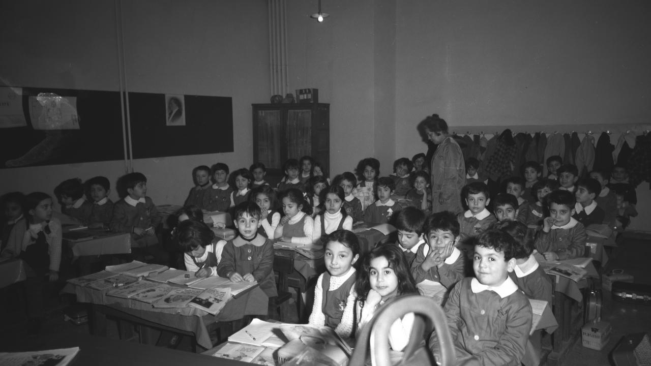 15 Eylül 1975`te okula yeni başlayan öğrenciler. (Arşiv)