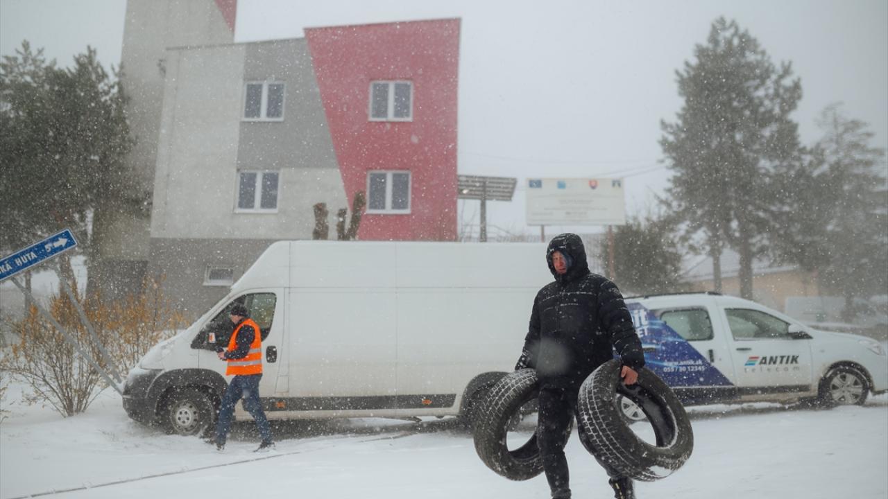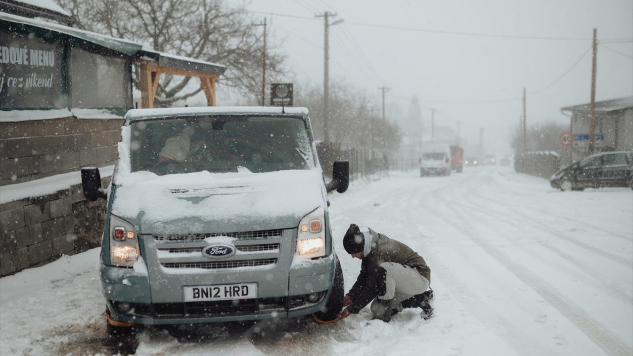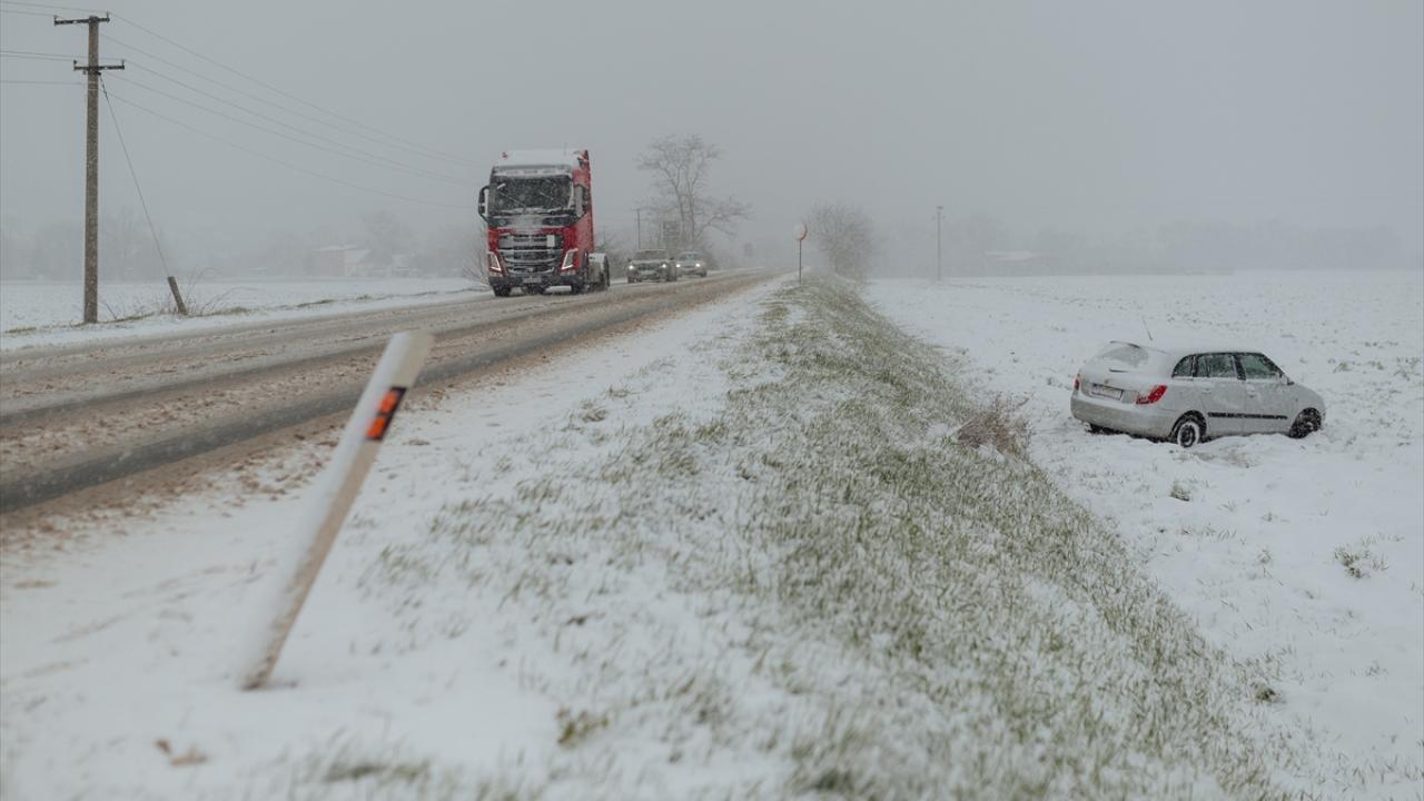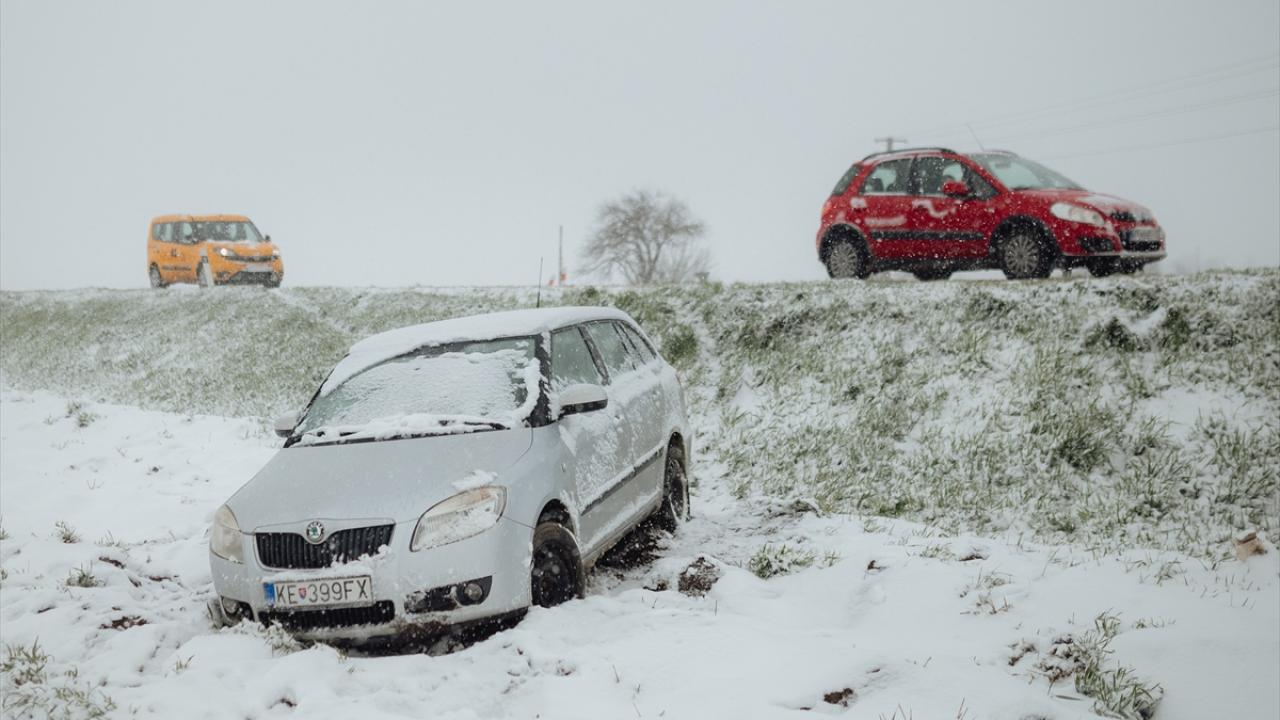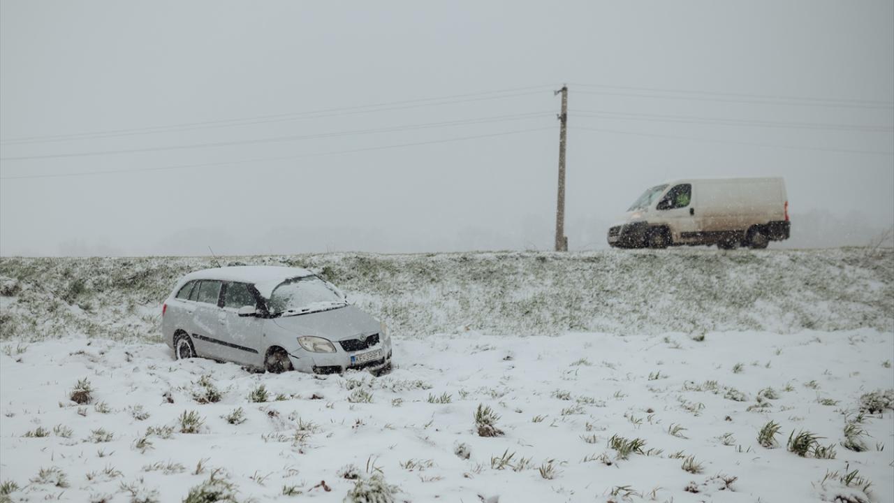 Slovakya'da baharda yağan kar trafikte aksamalara sebep oldu