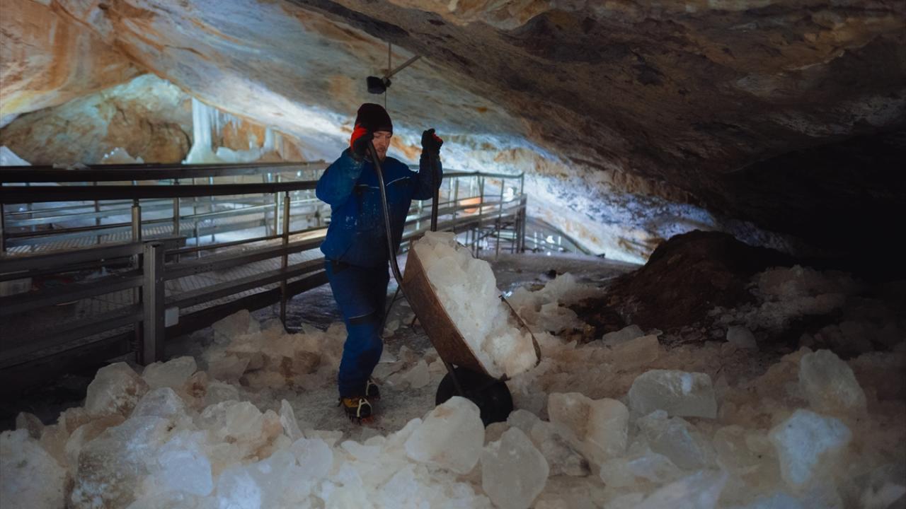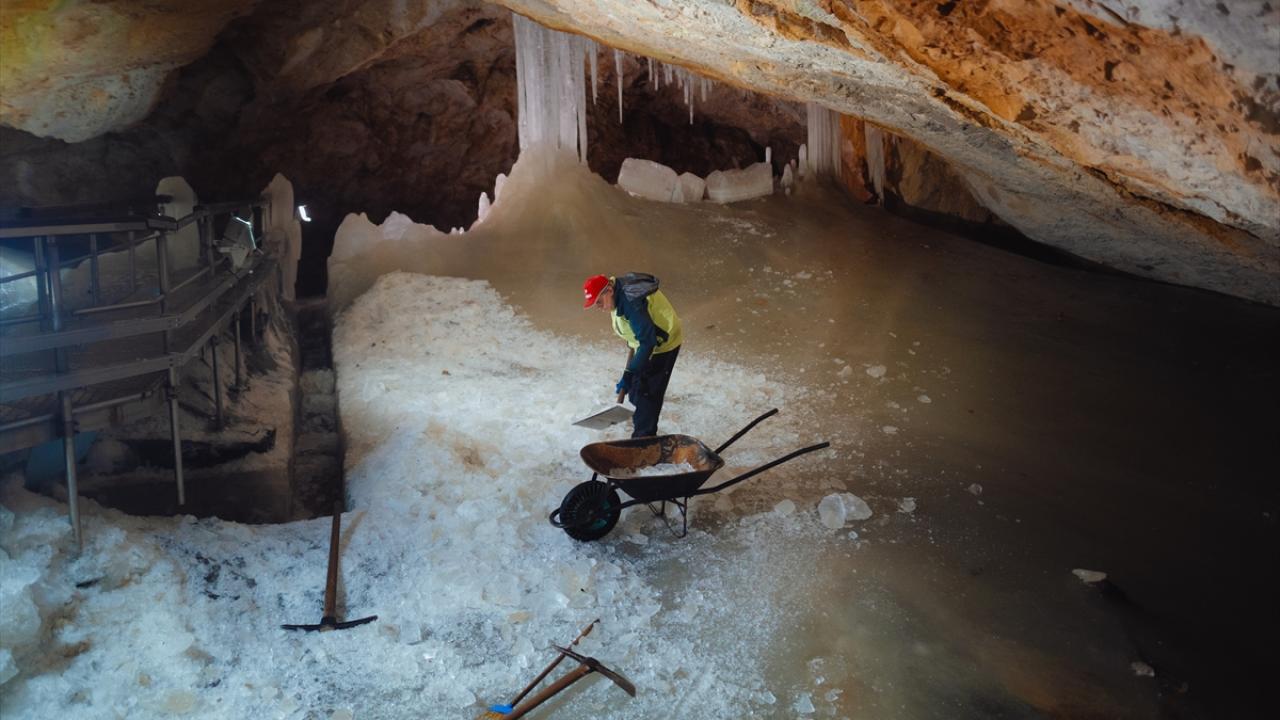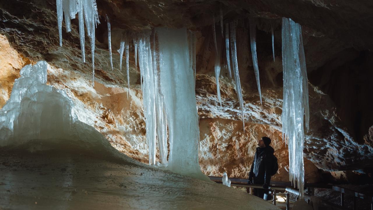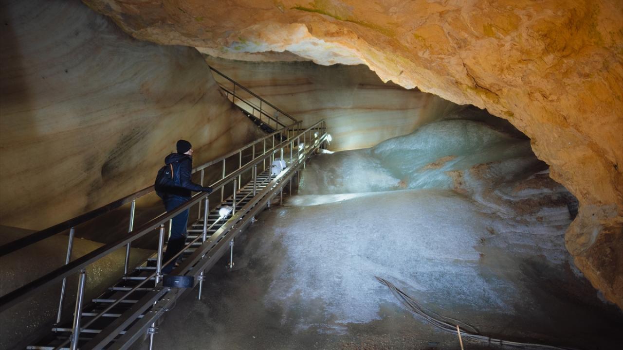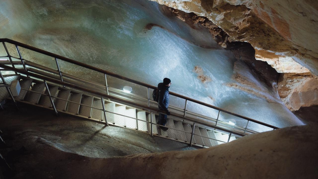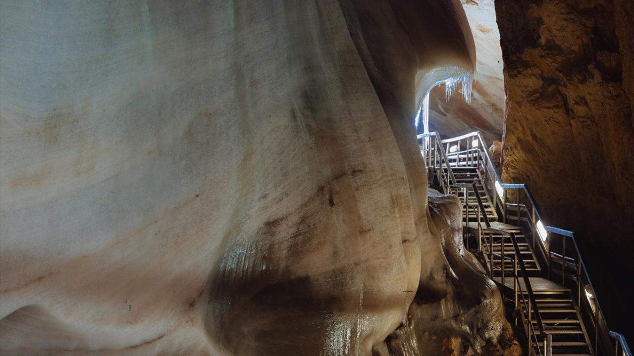 Bulunduğu kasaba ile aynı adı taşıyan mağarada yer alan buzlar, iklim değişikliğine bağlı olarak erimeye devam ediyor.