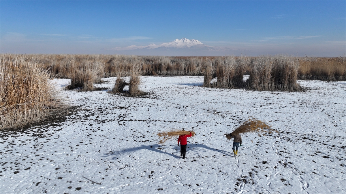 Göçmen kuşların uğrak merkezlerinden biri olan Erciyes Dağı eteklerindeki Sultan Sazlığı`nda yetişen kamışların hasadı, kış mevsiminde bölge halkı tarafından yapılıyor.
