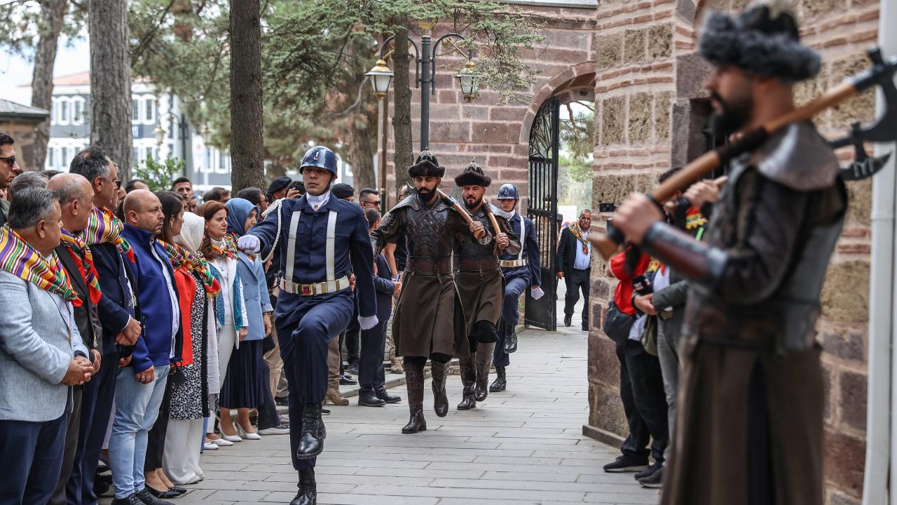 Yürüyüşün ardından Bakan Bak, türbe girişinde Söğüt Jandarma Ulaştırma Eğitim Merkezi Komutanlığında görevli, alp kıyafetli askerleri selamladı.