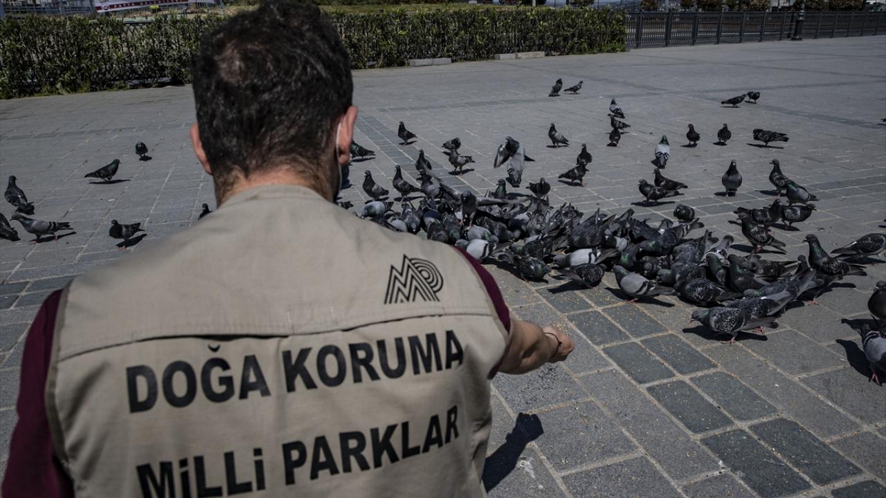 İstanbul'da Doğa Koruma ve Milli Parklar 1. Bölge Müdürlüğü ekipleri, tam kapanma sürecinde kuşları ve sokak hayvanlarını günde 400 kilogram yem ve mama ile besliyor.