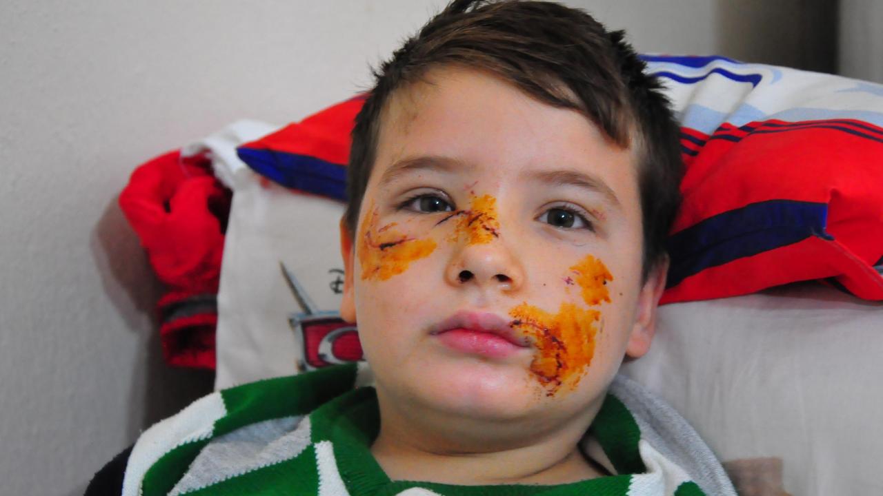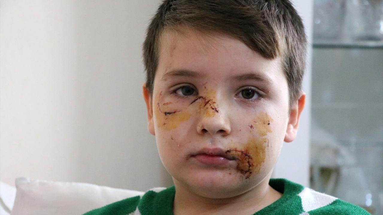 Yüzündeki ısırıklar nedeniyle yaklaşık 60 dikiş atılan çocuğun bir dişinin de kırıldığı belirtildi.