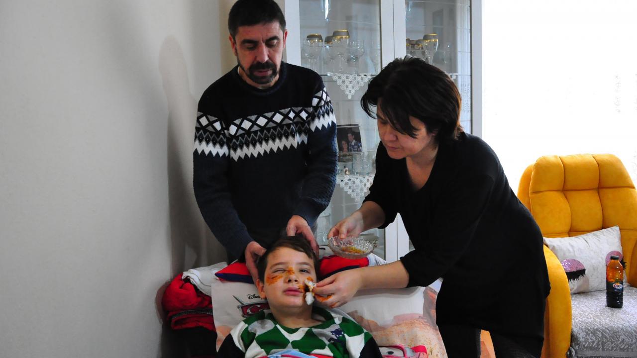 Manisa'da evinin önünde oynadığı sırada, sokak köpeğinin saldırısına uğrayan 8 yaşındaki Mert Dilek'i çevredekiler kurtardı. Bir dişi kırılan çocuğun yüzündeki derin kesiklere 60 dikiş atıldı.