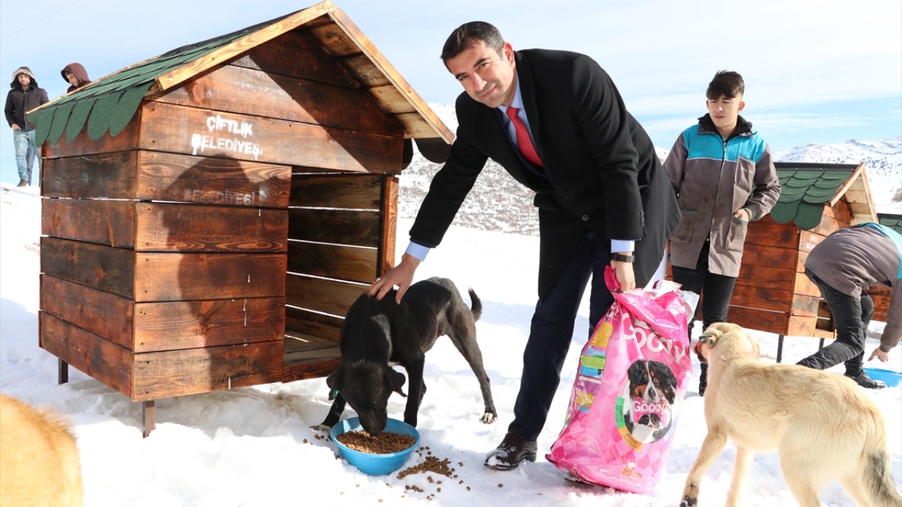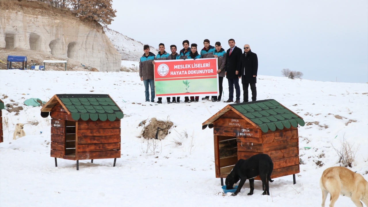 Çiftlik Çok Programlı Anadolu Lisesi Müdürü Abdullah Demir ise soğukta kalan hayvanların bir nebze sesi olabilmek için okulda böyle bir proje başlattıklarını, öğrencilerle 10 kulübe yaparak alana yerleştirdiklerini söyledi.