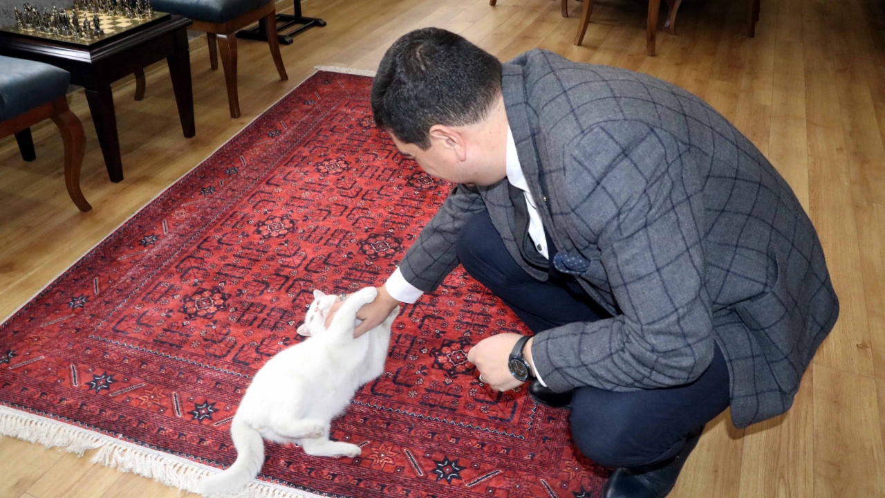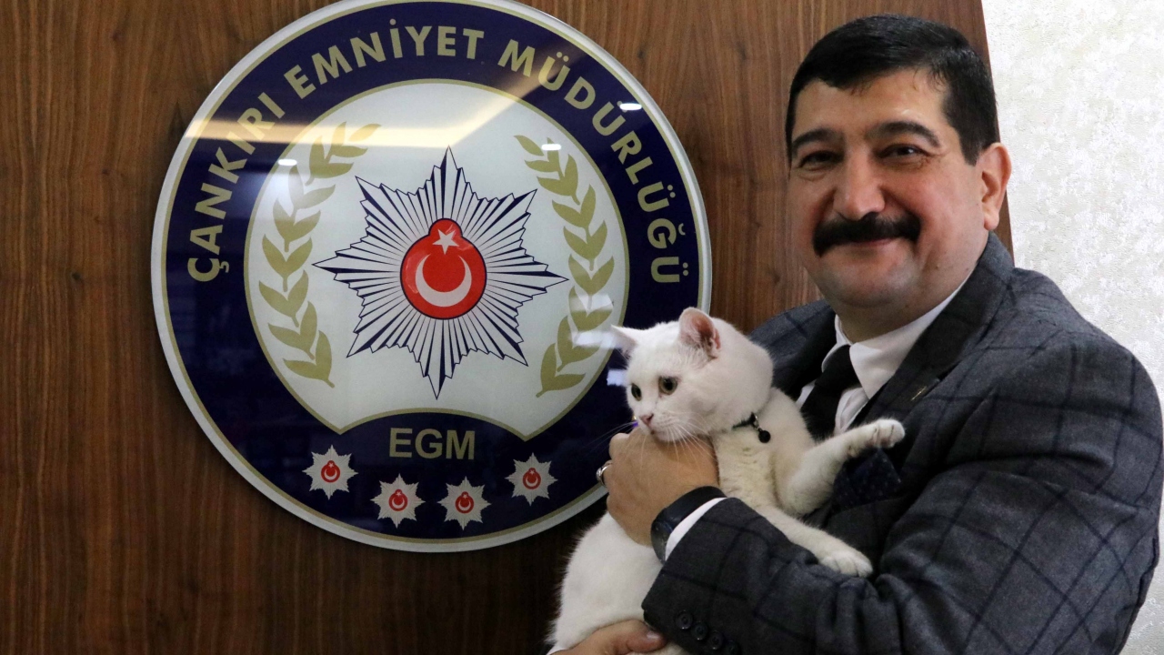 Sokakta yaralanan ve bir klinikte tedavi edilirken Çankırı Emniyet Müdürü Sadettin Aksoy tarafından sahiplenilen sevimli kedi "Miço"ya Emniyet Müdürlüğünde bakılıyor.