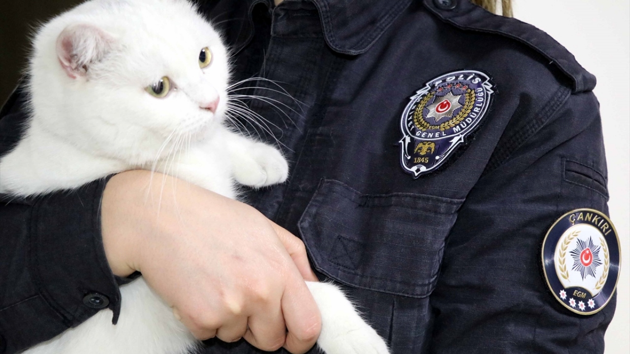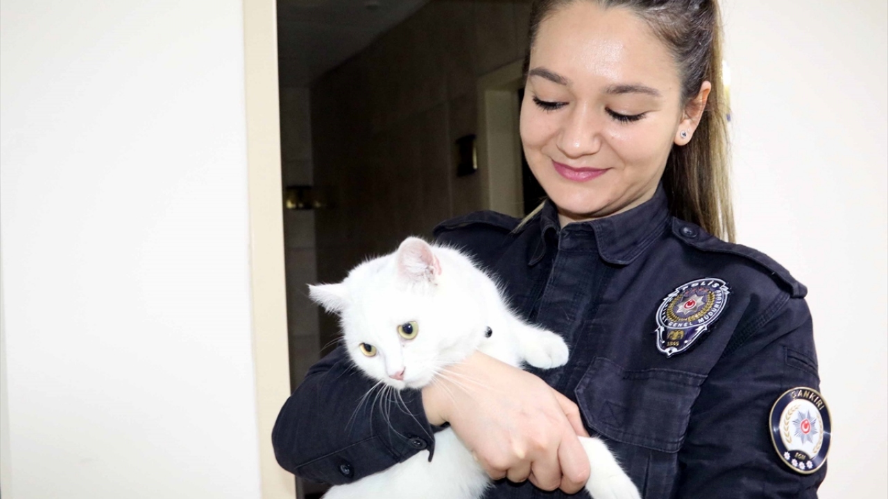 Sokakta yaralı bulunan kedi 'Miço' artık Çankırı Emniyet'te