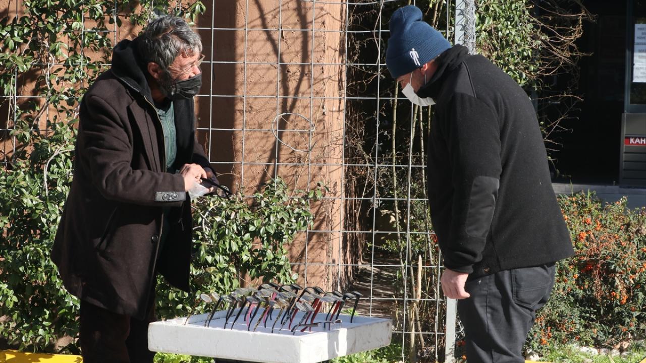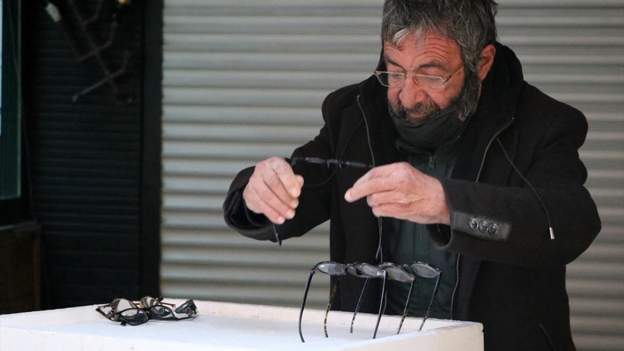 Bir hayırseverin kendisine aldığı gözlükleri seyyar tezgahta satıp günlük yemek ihtiyacını karşılayan Karadavut, havaların soğumasıyla iyice zor duruma düştü.