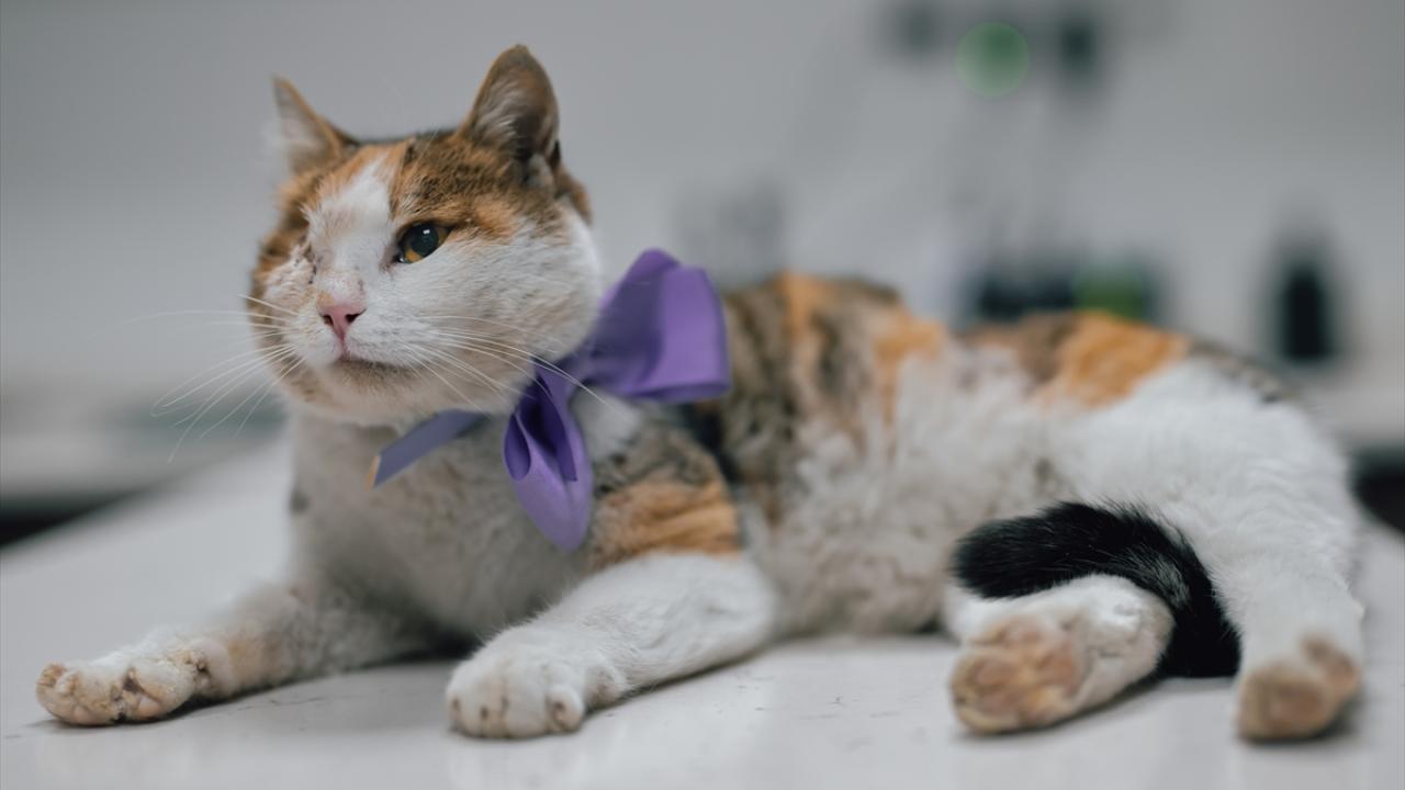 Sokakta yaşayan 8 aylık Calico cinsi dişi kedi Bergen, hayvanseverler tarafından koruma altına alındı ve veteriner hekimlerce rehabilite edildi.