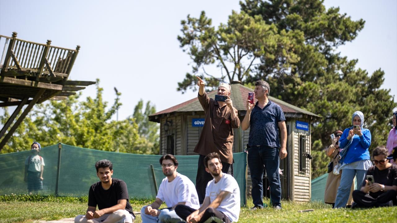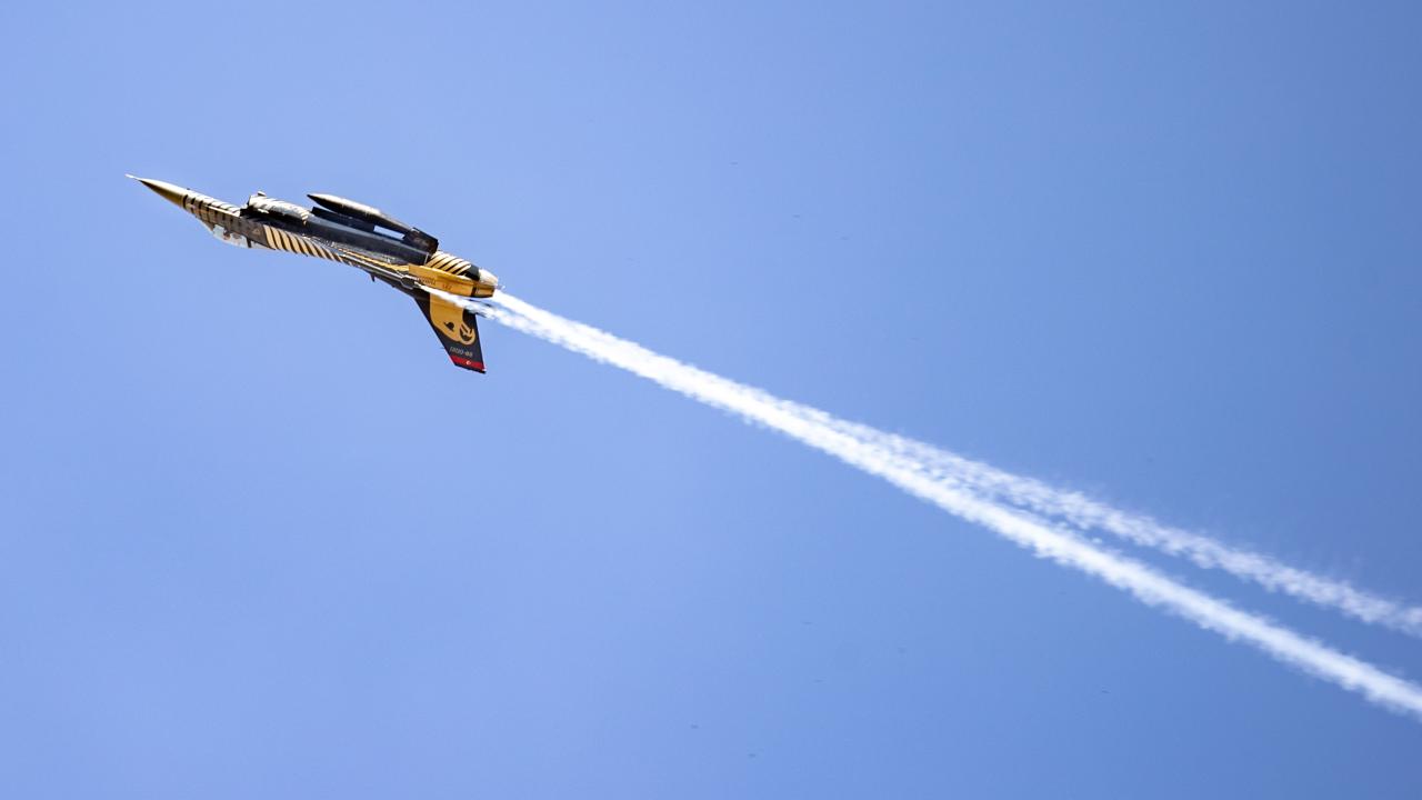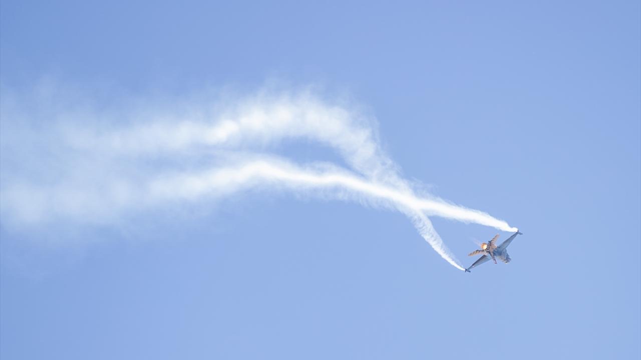 Prova uçuşunu izlemeye gelenler, SOLOTÜRK pilotunun F-16 savaş uçağıyla yaptığı akrobasi hareketlerini cep telefonlarıyla kaydetti.