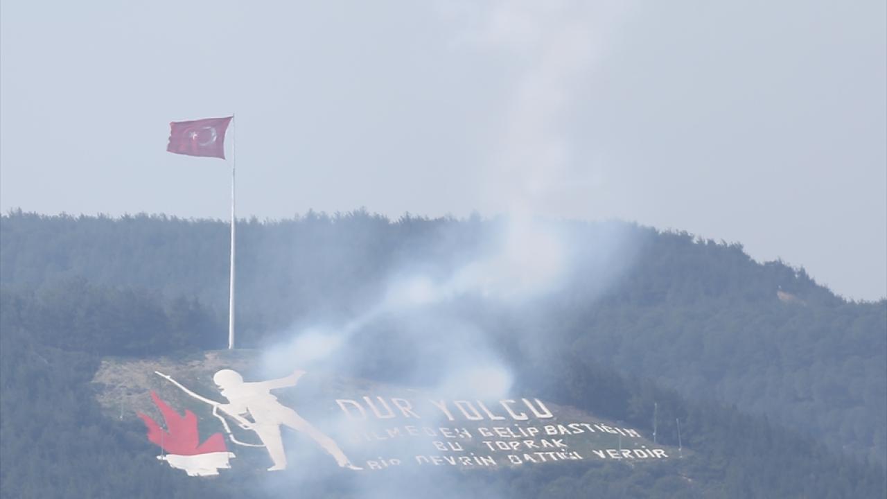 SOLOTÜRK`ün Çanakkale semalarındaki gösterisini, Anadolu Hamidiye Tabyası`nda bekleyen vatandaşlar ilgiyle izledi.