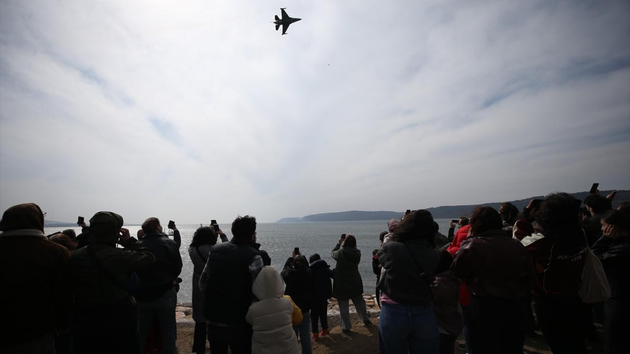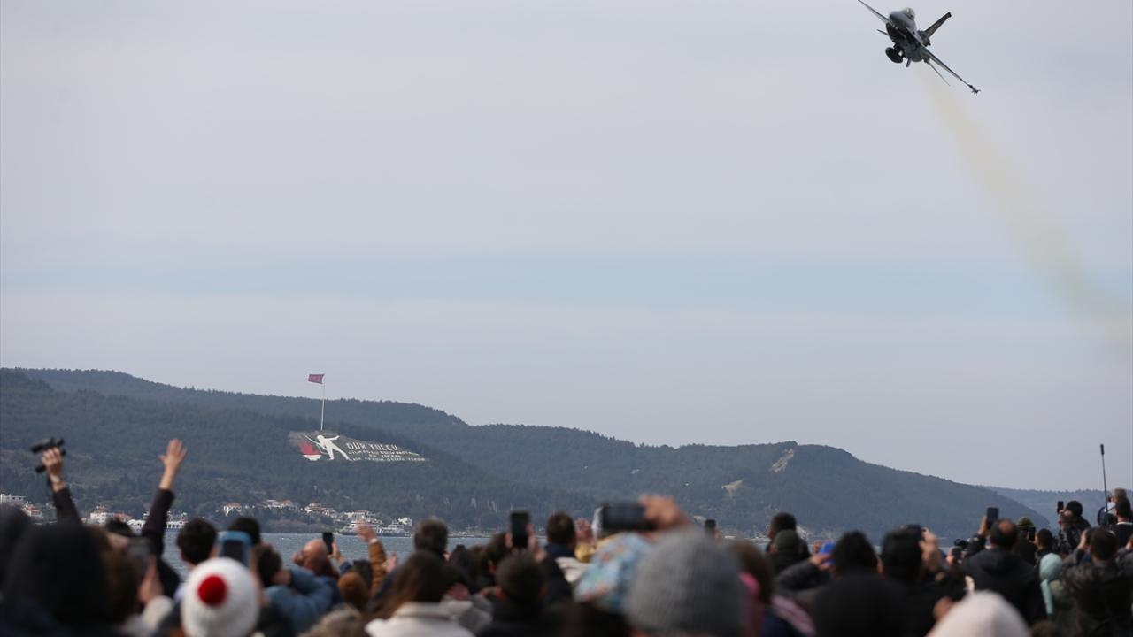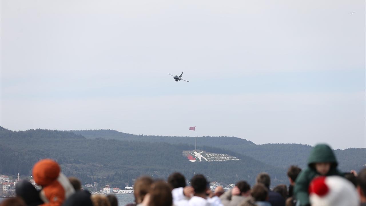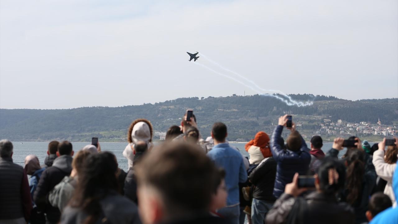 Türk Hava Kuvvetleri akrobasi timi SOLOTÜRK, 18 Mart Şehitleri Anma Günü ve Çanakkale Deniz Zaferi etkinlikleri kapsamında gösteri uçuşu yaptı.