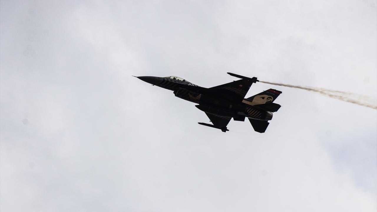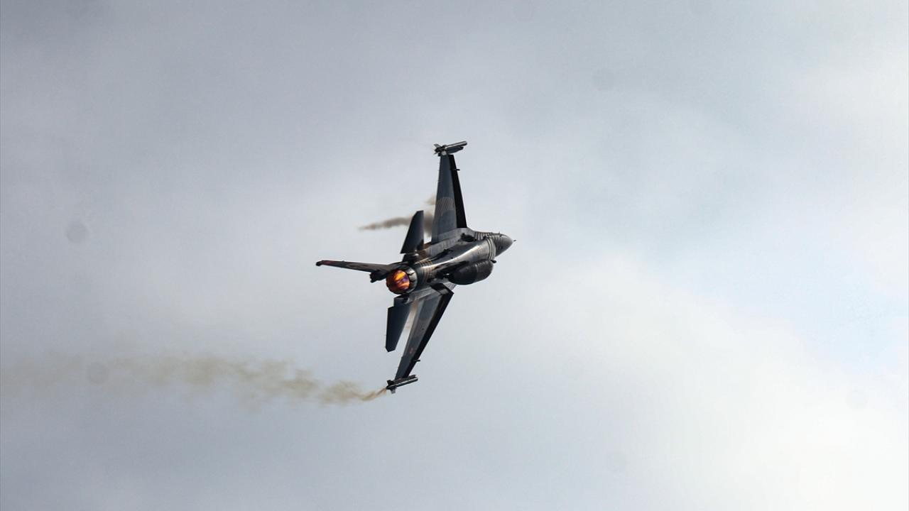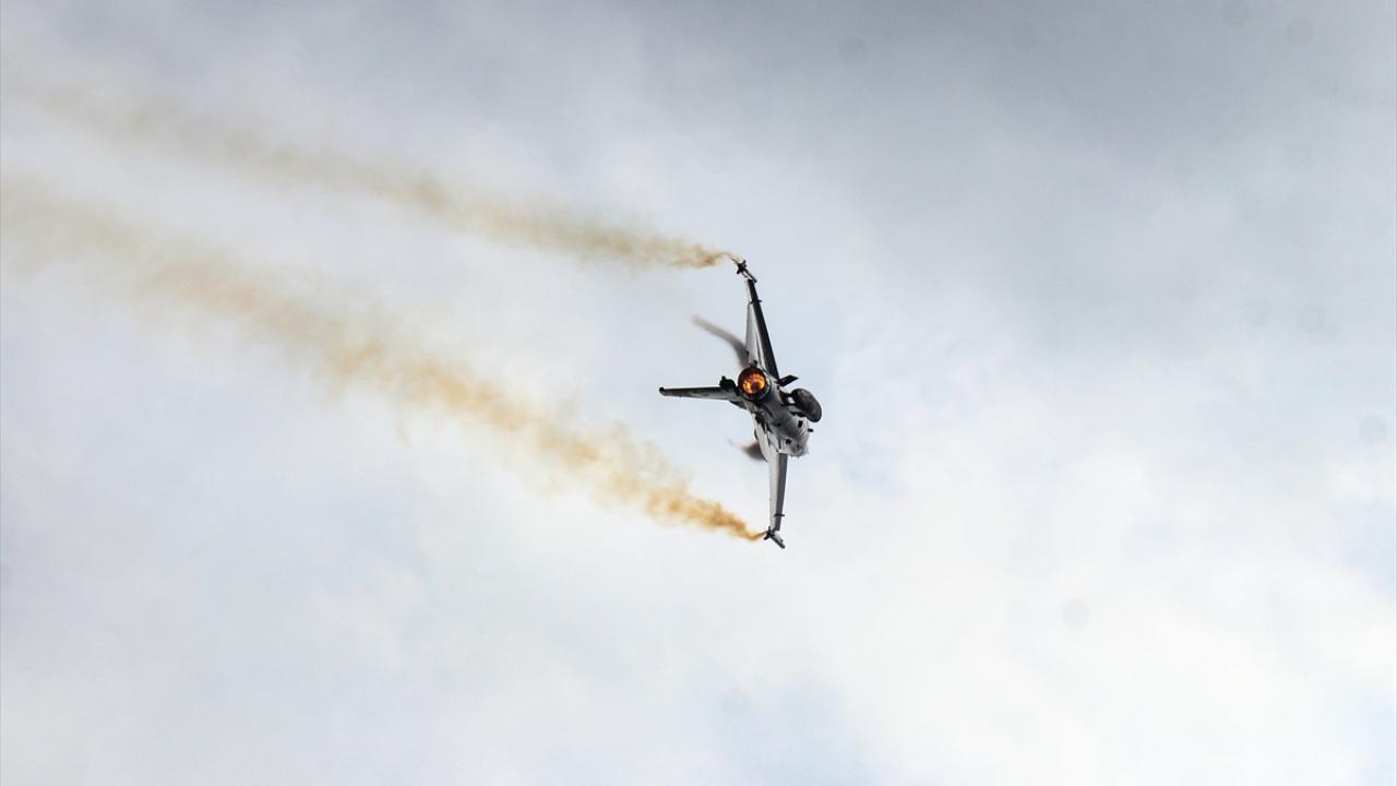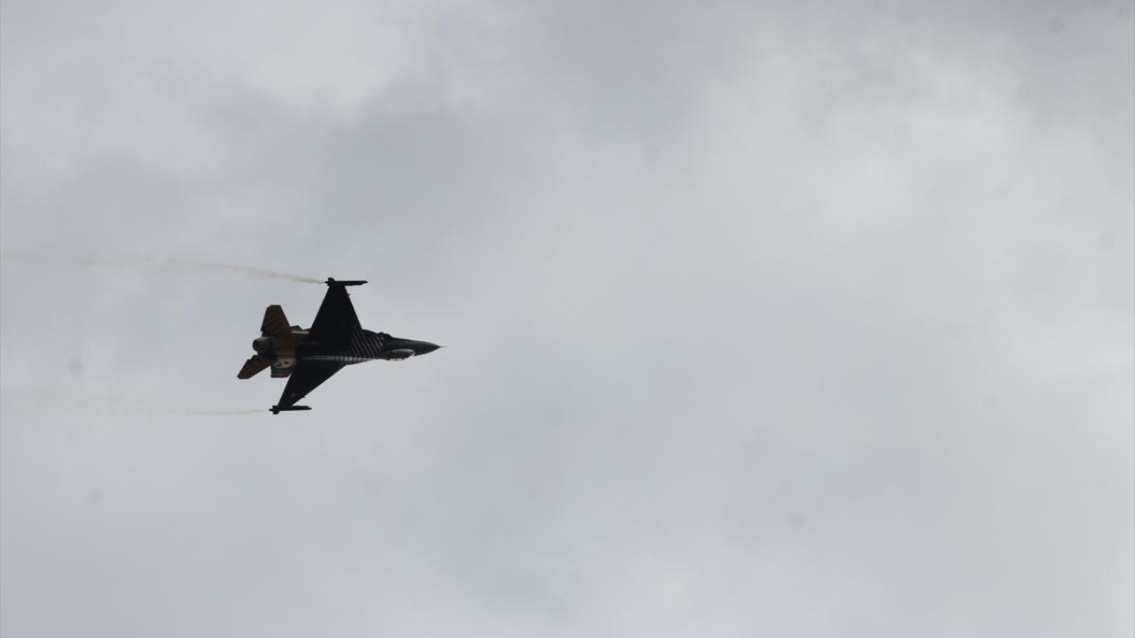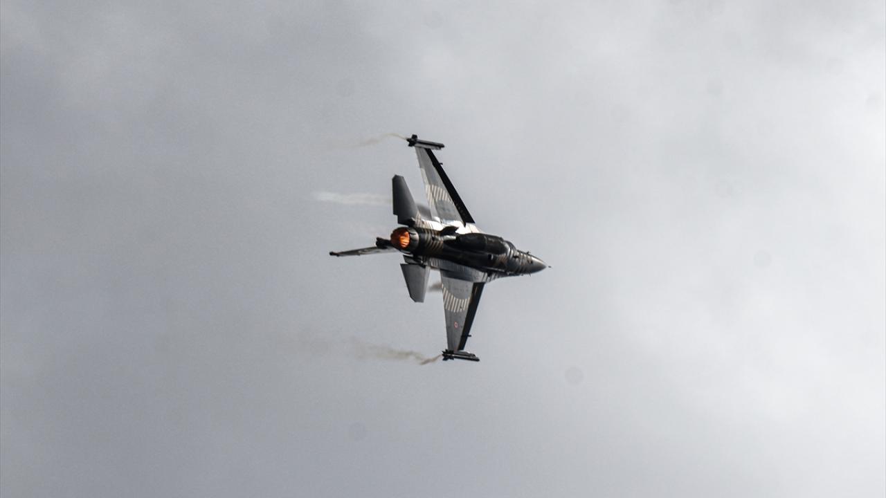 Bazı vatandaşlar, F-16 uçağıyla yapılan akrobasi hareketlerini cep telefonlarıyla kaydetti.
