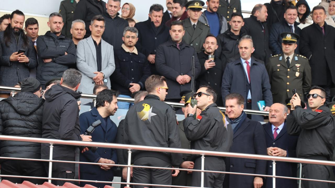Erzurum`dan havalanan SOLOTÜRK`ün Erzincan semalarındaki gösterisi, Erzincan Merkez Atletizm Pisti`nde ellerinde Türk bayraklarıyla bekleyen vatandaşlarca ilgiyle izlendi.