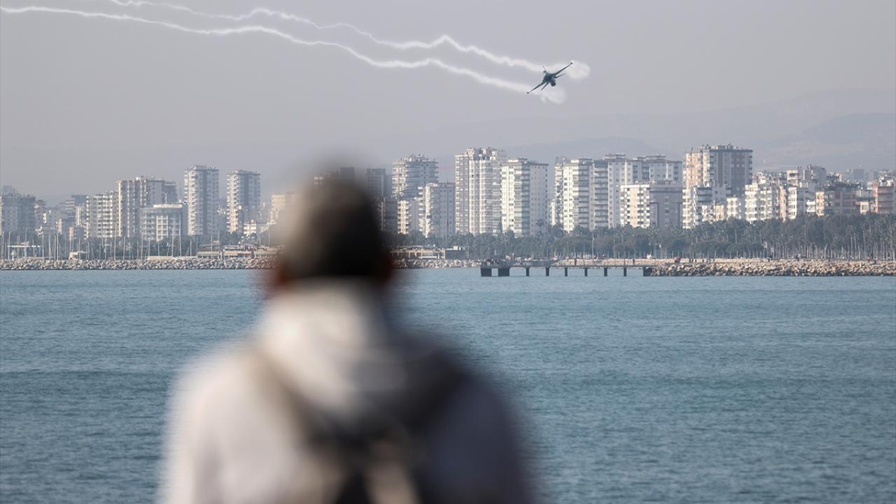 Daha sonra aynı noktada prova uçuşlarını gerçekleştiren SOLOTÜRK`ü, sahil bandında çok sayıda vatandaş izledi.