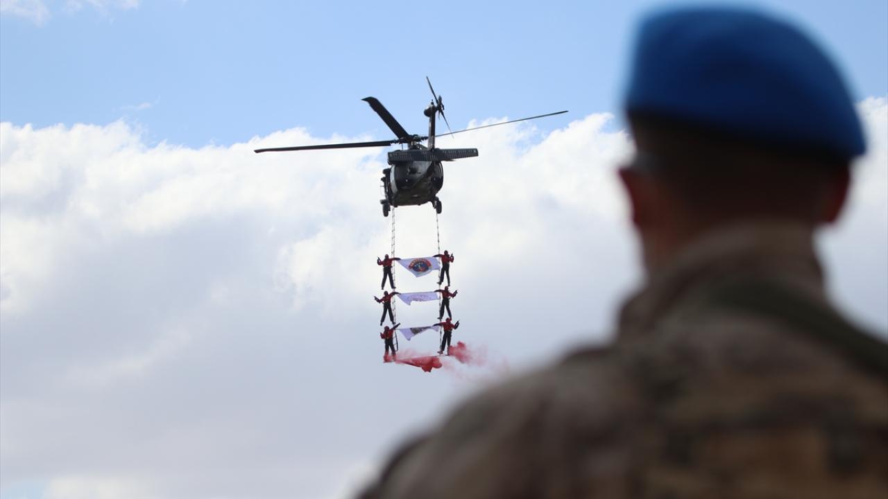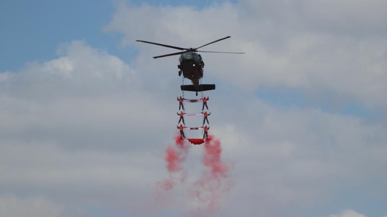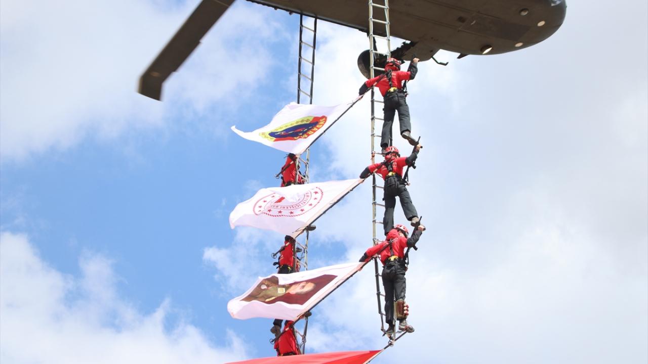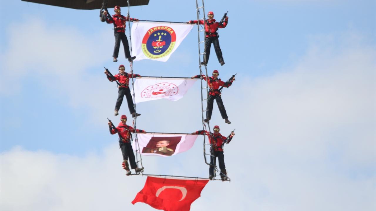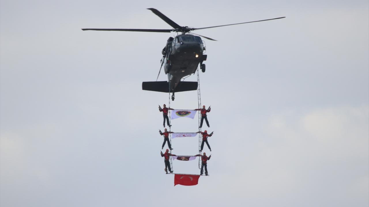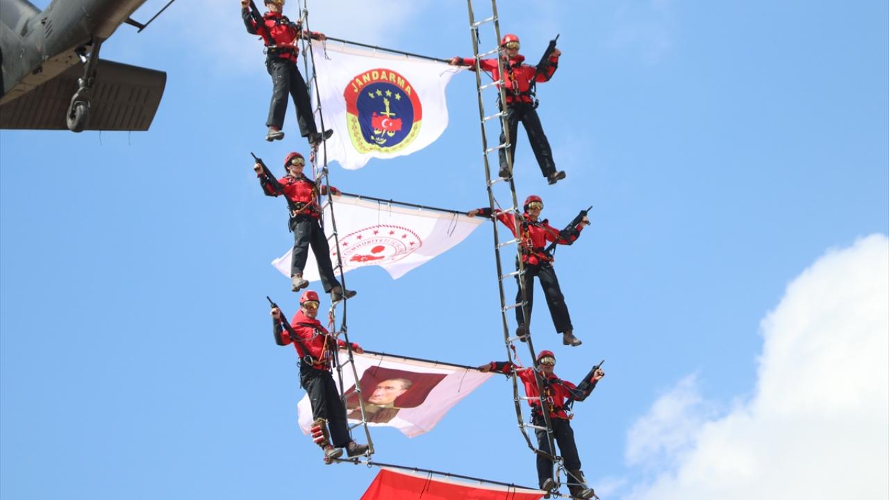 Jandarma ekipleri de helikopterle "üzüm salkımı" gösterisi gerçekleştirdi.