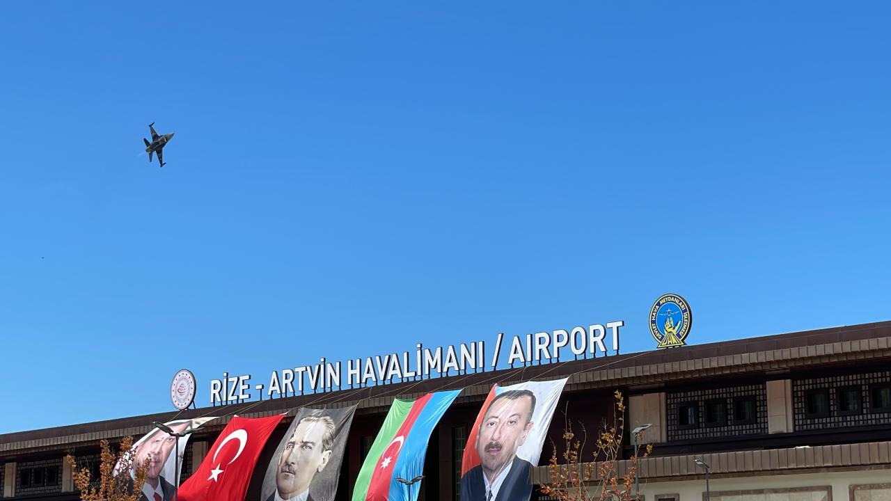 Türk Hava Kuvvetlerinin akrobasi timi SOLOTÜRK, Cumhurbaşkanı Recep Tayyip Erdoğan'ın katılımıyla açılışı gerçekleştirilecek Rize-Artvin Havalimanı'nda gösteri uçuşu gerçekleştirdi.