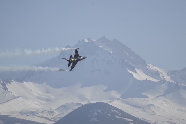 Türk Silahlı Kuvvetlerinin gösteri ekibi SOLOTÜRK, Kayseri'de gösteri uçuşu gerçekleştirdi.