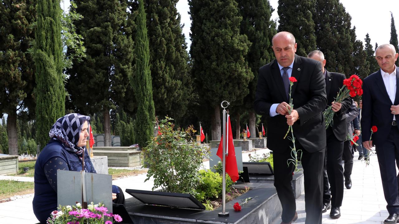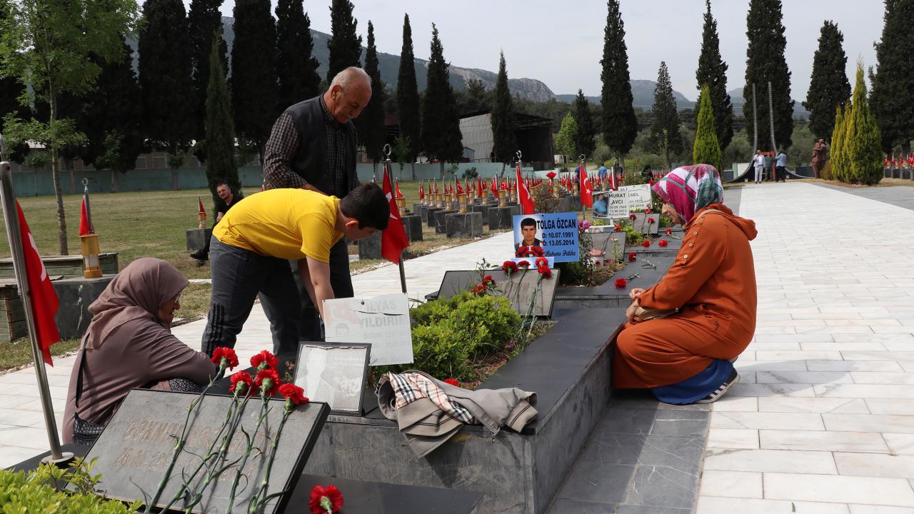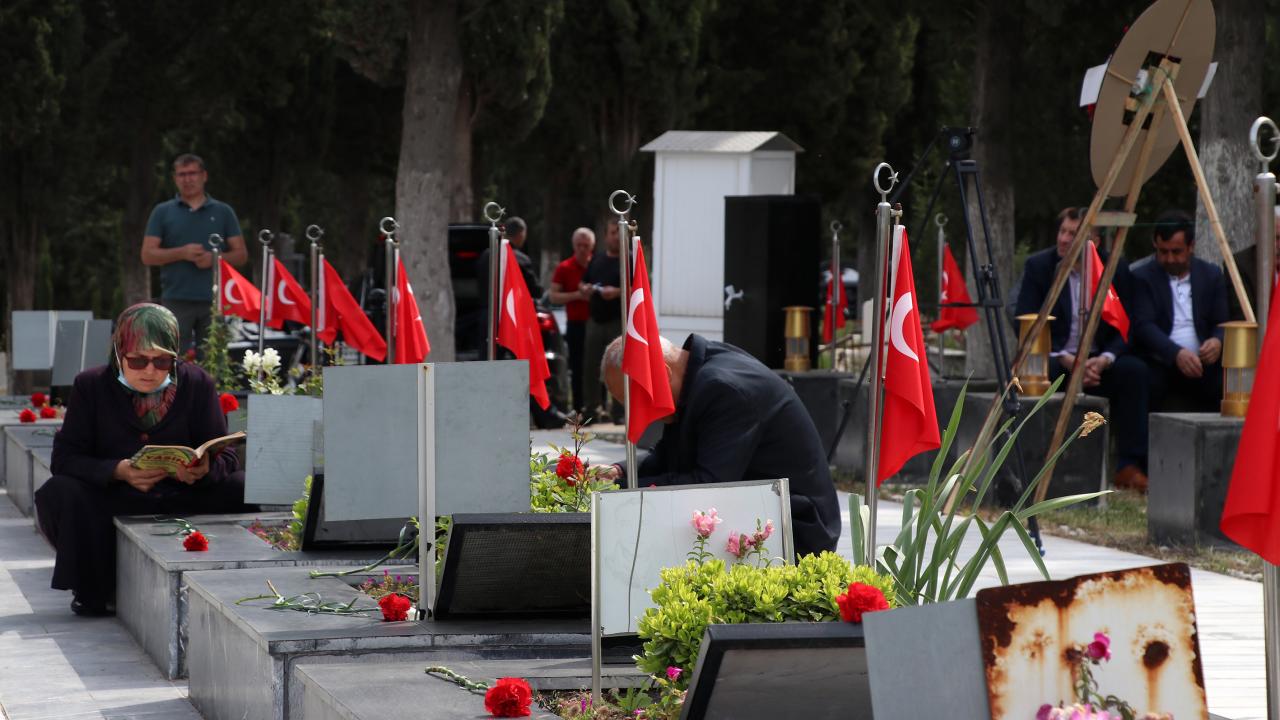 Aileler Kur`an-ı Kerim okudu, şehitliğe karanfil bıraktı.