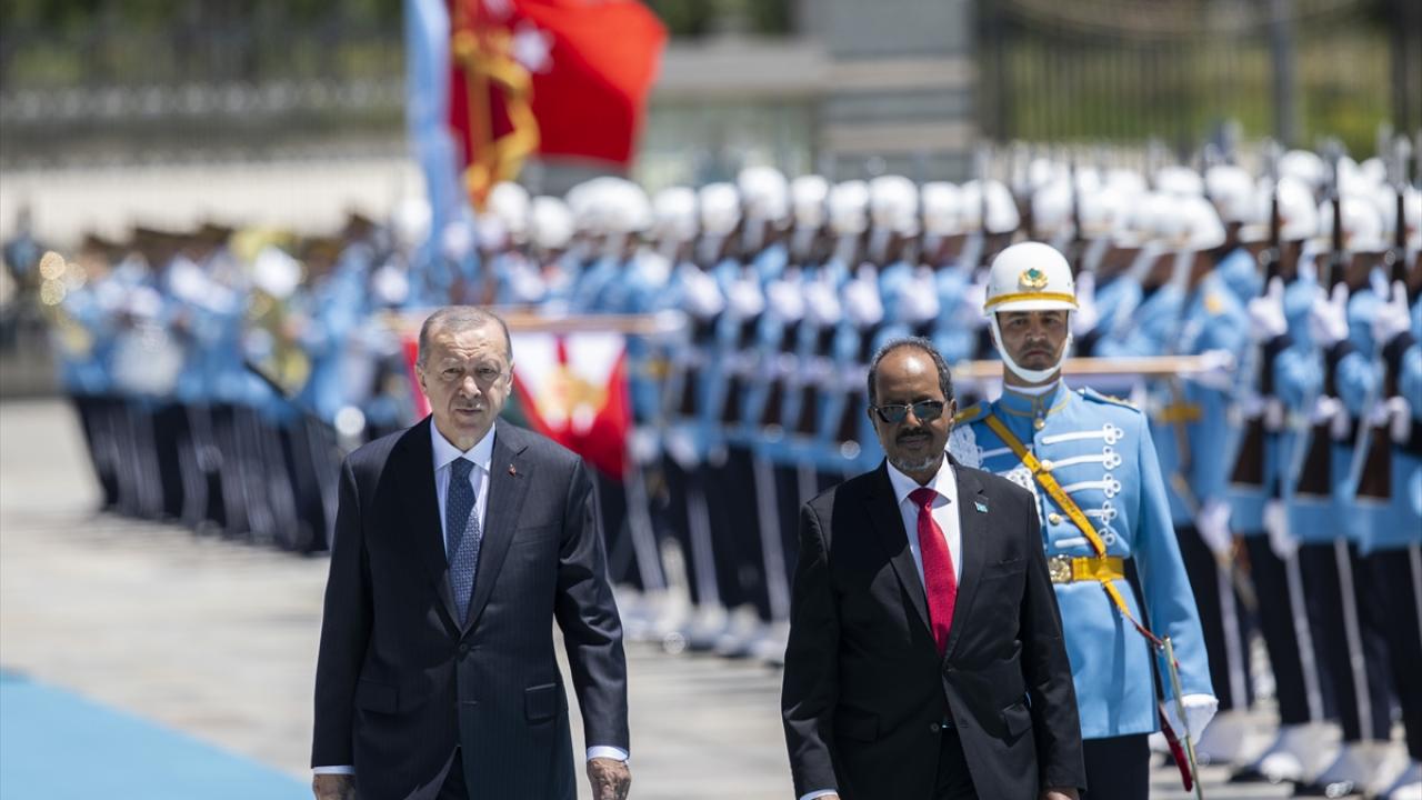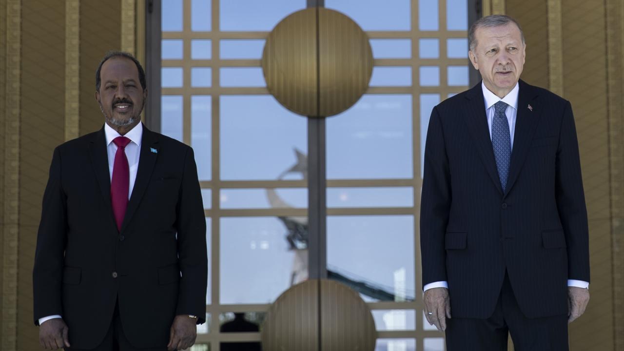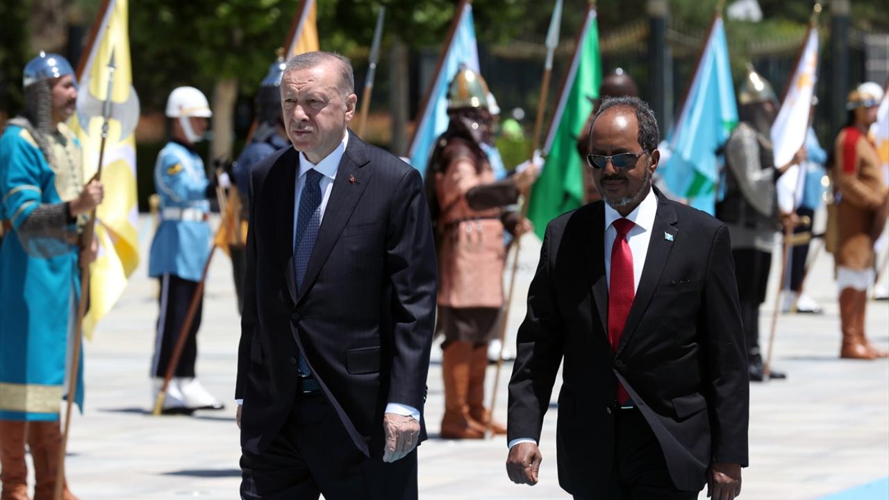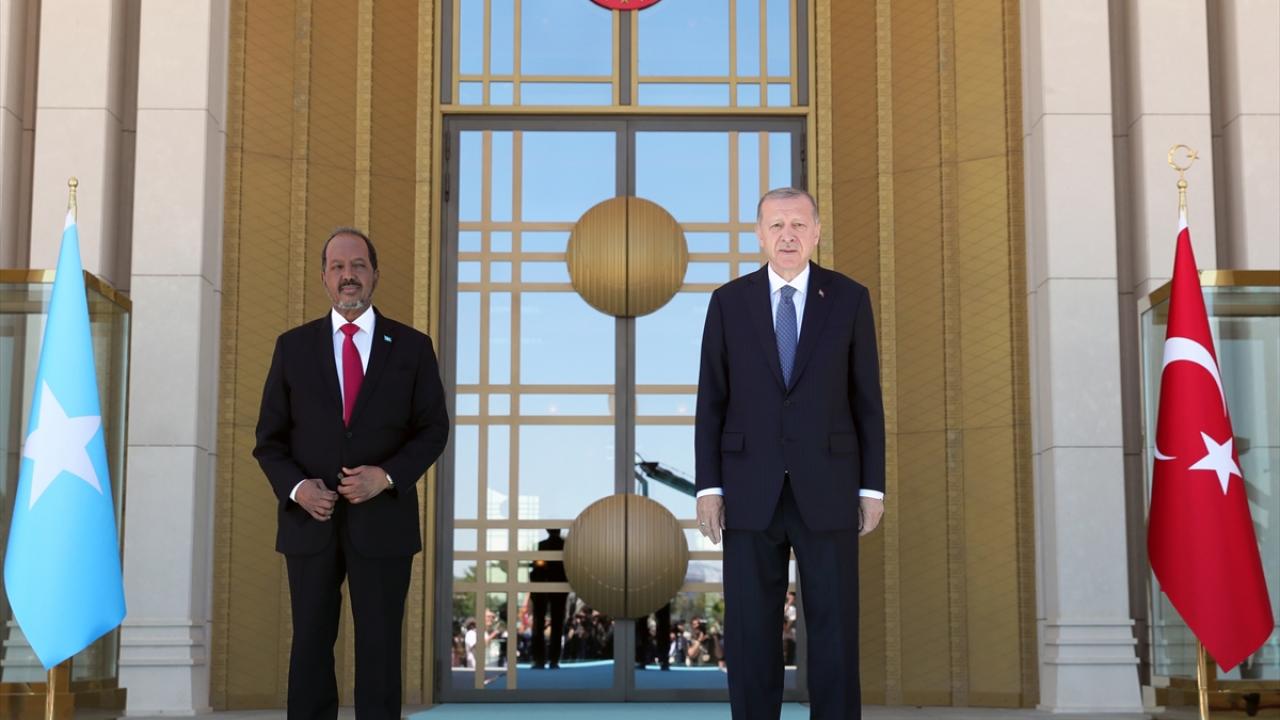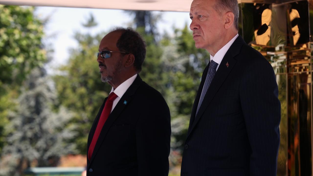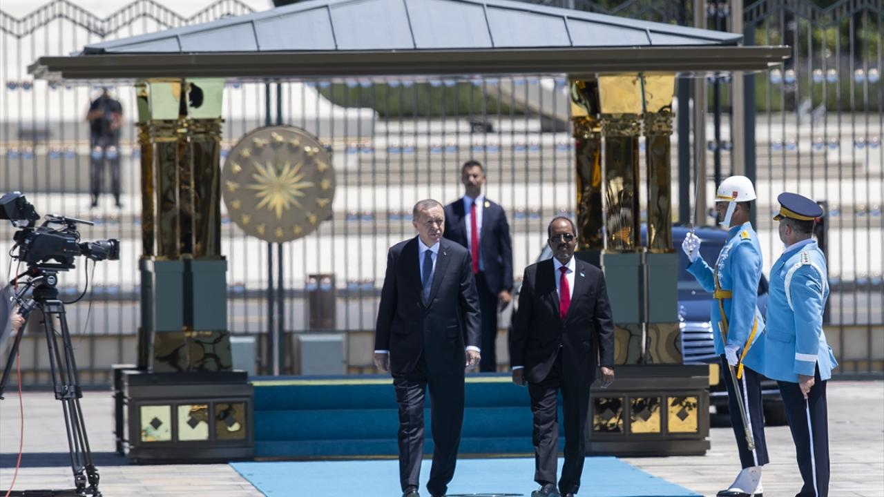 Cumhurbaşkanı Erdoğan'ın diplomasi trafiği devam ediyor. Somali Cumhurbaşkanı Hasan Şeyh Mahmud, resmi temaslarda bulunmak üzere Ankara'da. Erdoğan, Somalili mevkidaşını Beştepe'de resmi törenle karşıladı.