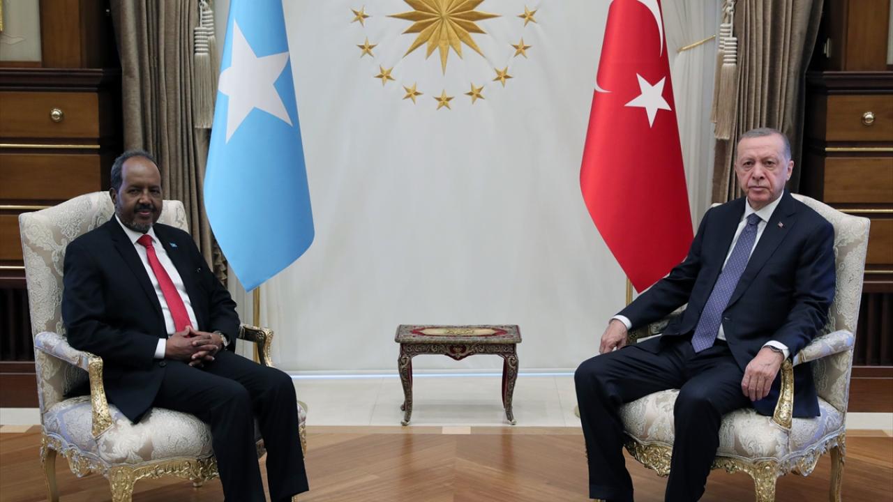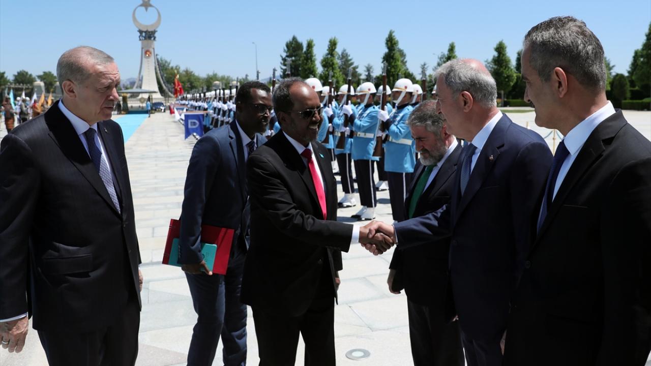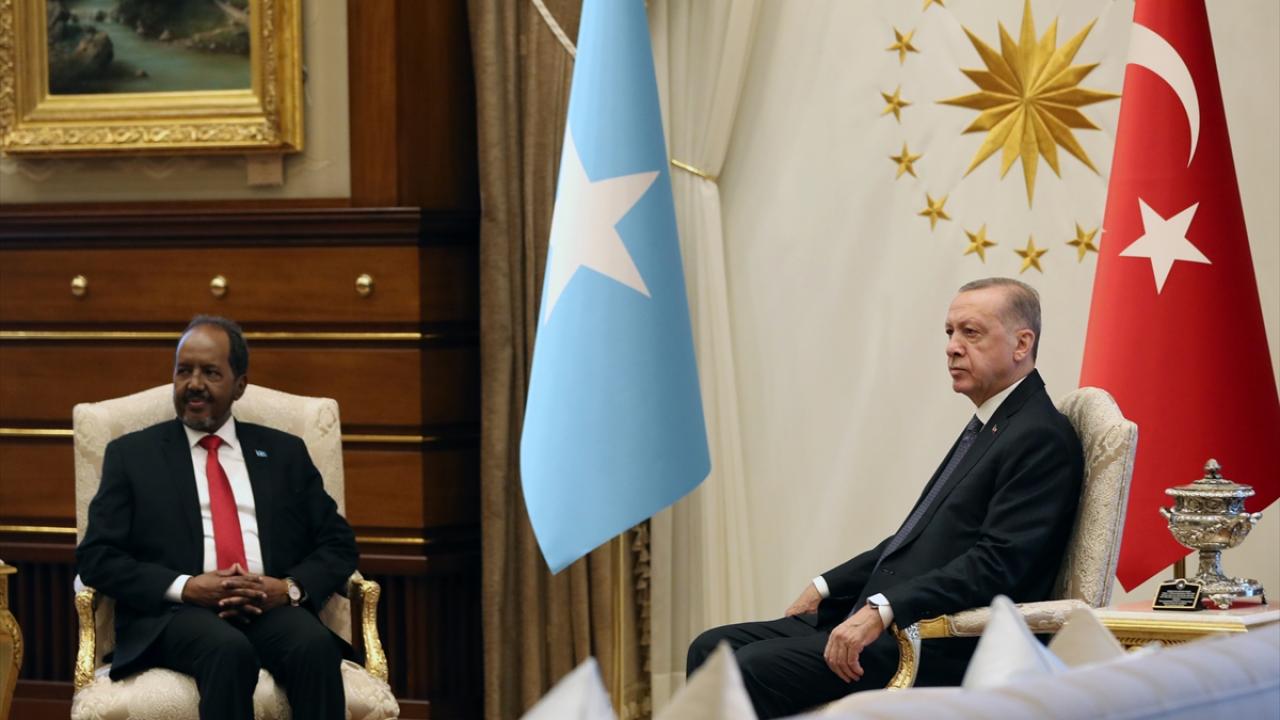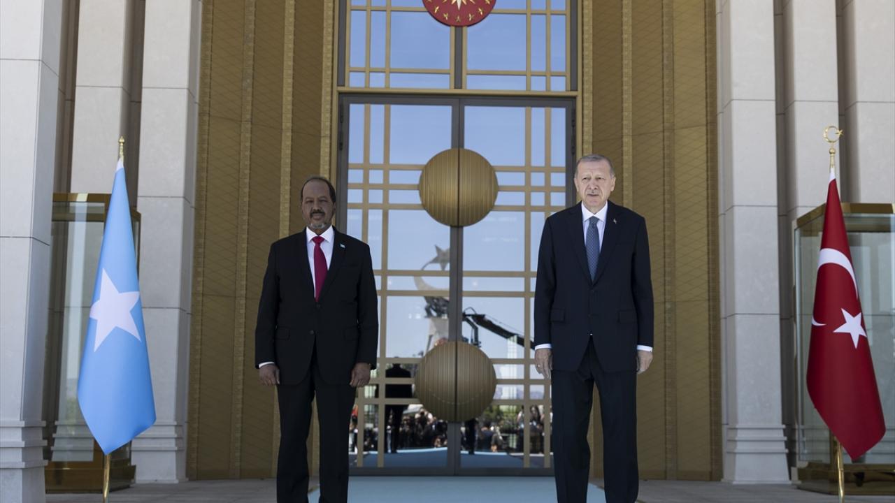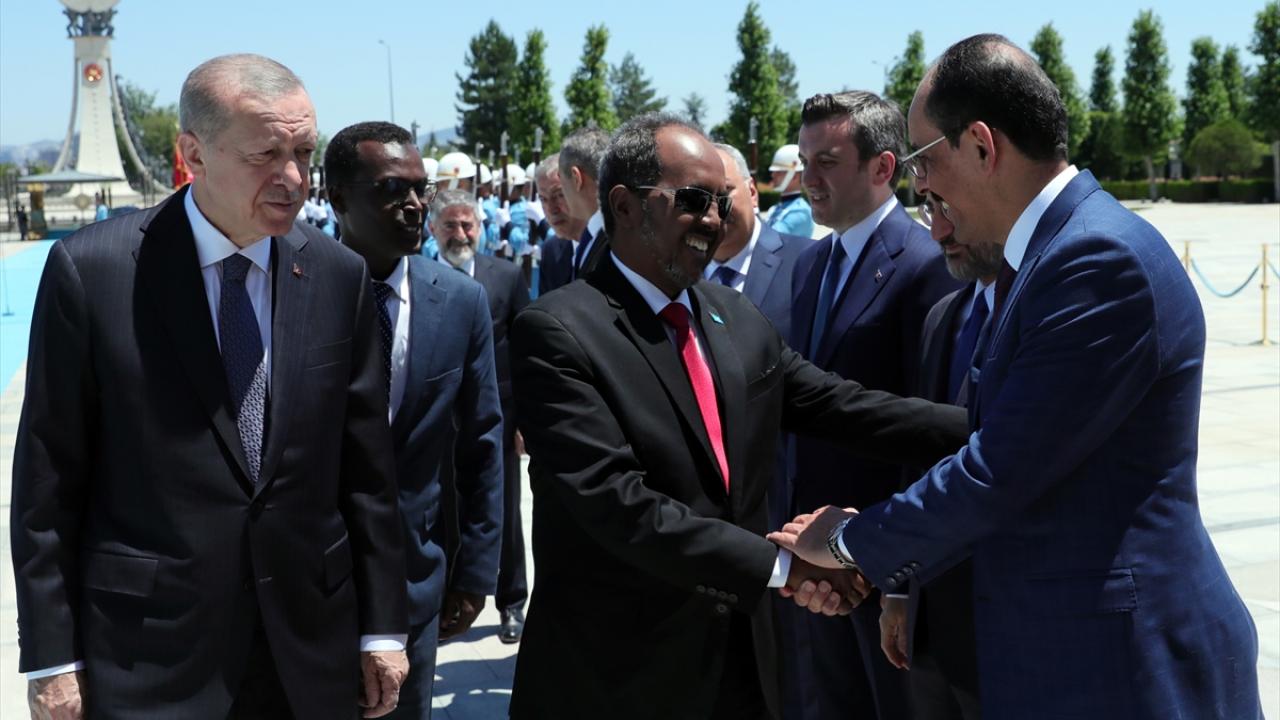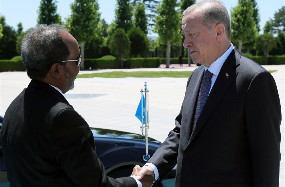 Cumhurbaşkanı Erdoğan'ın diplomasi trafiği devam ediyor. Somali Cumhurbaşkanı Hasan Şeyh Mahmud, resmi temaslarda bulunmak üzere Ankara'da. Erdoğan, Somalili mevkidaşını Beştepe'de resmi törenle karşıladı.