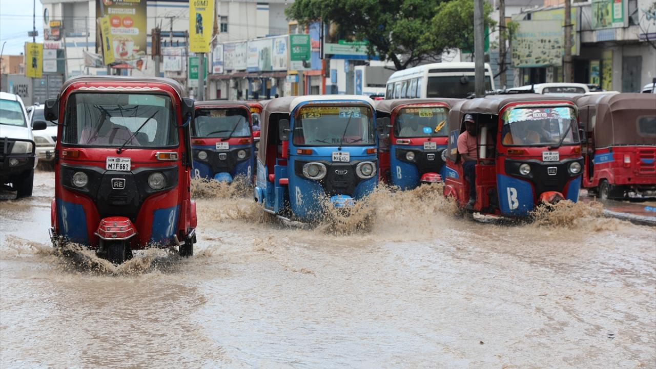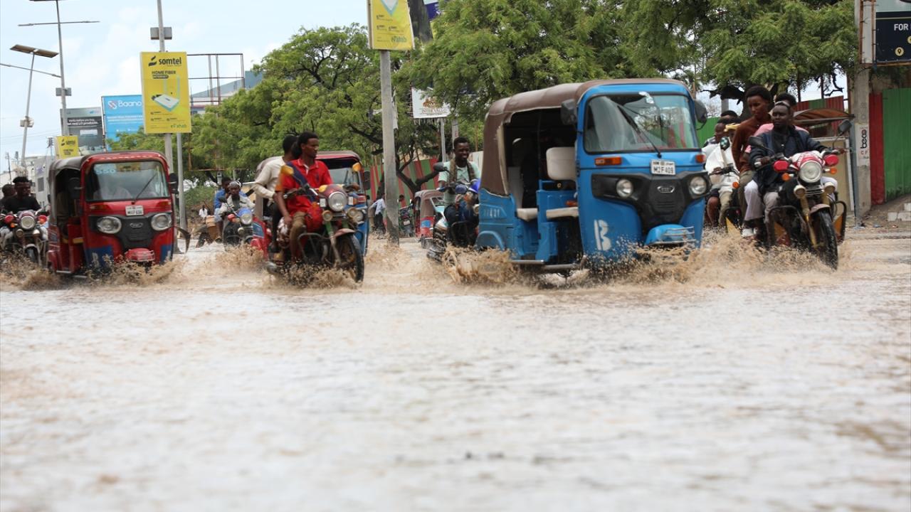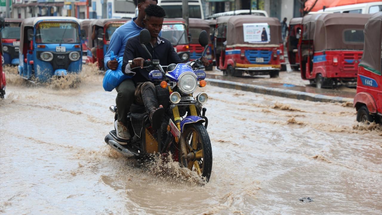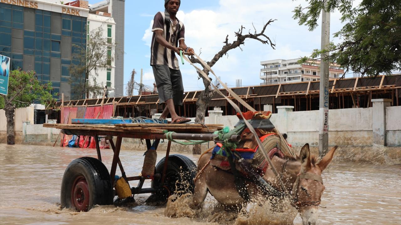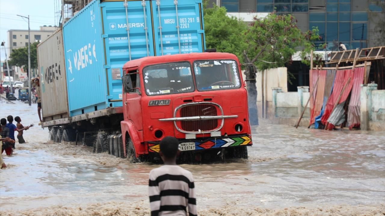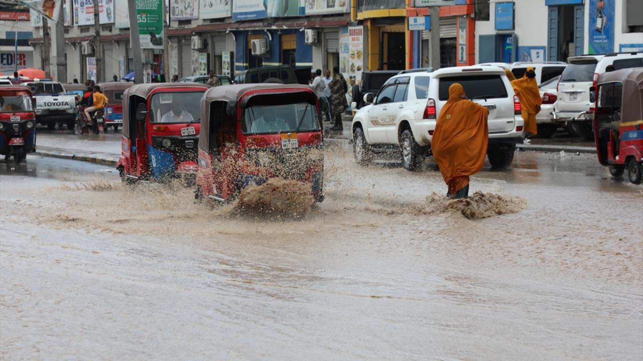 Somali'de etkili olan şiddetli yağışlar nedeniyle başkent Mogadişu'daki yolları su bastı.
