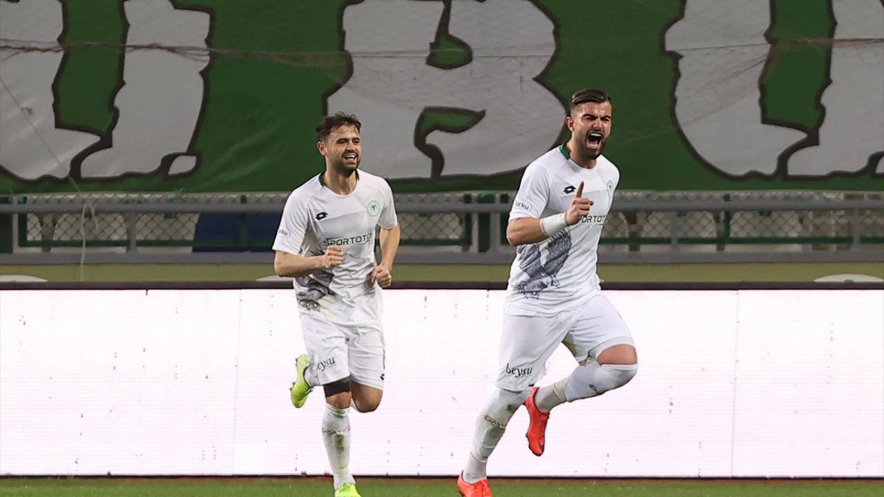 İttifak Holding Konyasporlu Abdulkerim 18. dakikada attığı golün ardından sevinç yaşadı.
