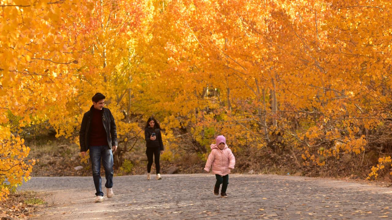 Kalderayı ziyarete gelen aileler ve vatandaşlar, sararan ve kızıl renklere boyanan ağaçların oluşturduğu yollarda ve vadilerde fotoğraflar çekiyor.