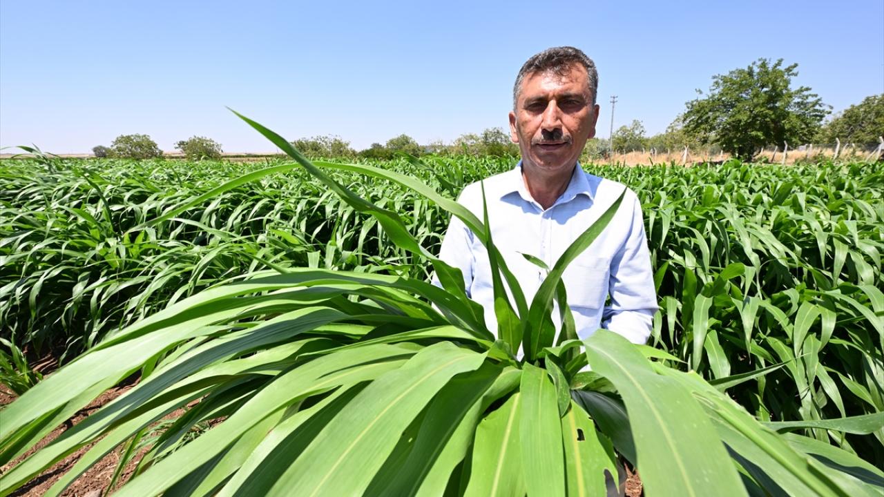 "İşletmemde kullandığım yemleri elimden geldiği kadar kendim yetiştirmeye çalışıyorum. Daha önce `5 karma` dediğimiz yem bitkisi ekilmişti. Onu biçtik, balyaladık, akabinde de İl Tarım ve Orman Müdürlüğümüzün teşviki ve tavsiyesiyle sorgum sudan otu melezini ektik. Ekileli 45-50 gün oldu. Mısırdan hızlı gelişiyor, gelişimi çok iyi, büyük ihtimalle iyi olacak. Avantajlarından bir diğeri daha az tohum, daha az su, daha az gübreye ihtiyaç duyması."