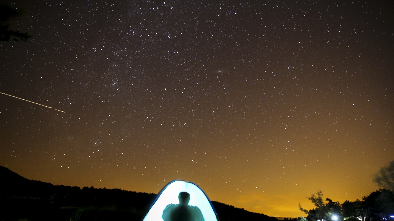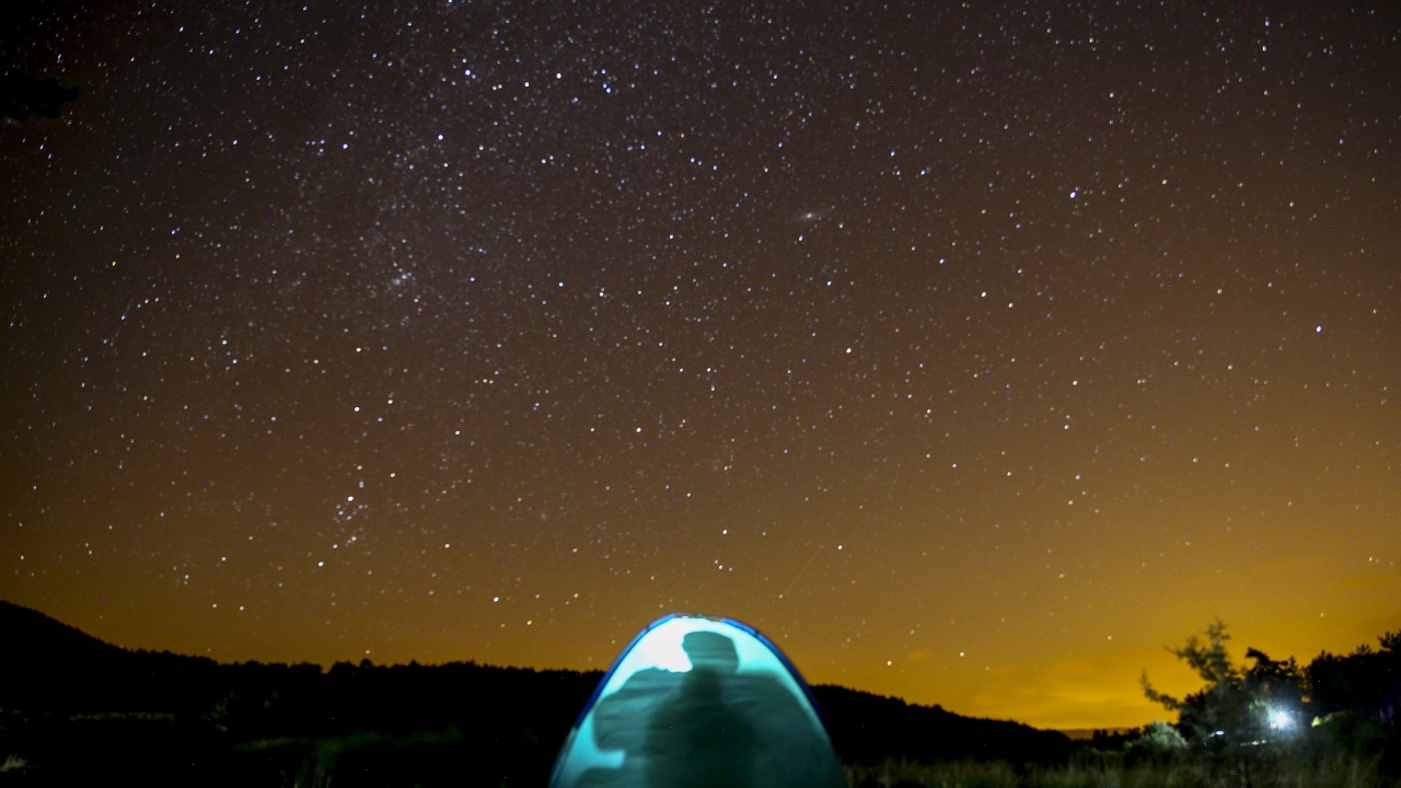 Ankara'nın Güdül ilçesinde bulunan Sorgun Tabiat Parkı'nda gece karanlığında beliren yıldızlar, bölgede kamp yapanlarla güzel görüntü oluşturdu.