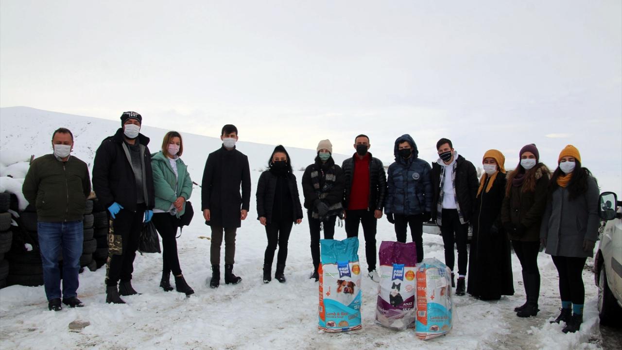Sivas'ta bir üniversite öğrencisinin sosyal medyadan başlattığı kampanyaya yem ve mama desteğinde bulunan çok sayıda hayvansever, kış şartları ve yeni tip koronavirüs (Covid-19) salgınından olumsuz etkilenen sokak hayvanlarının yardımına koştu.