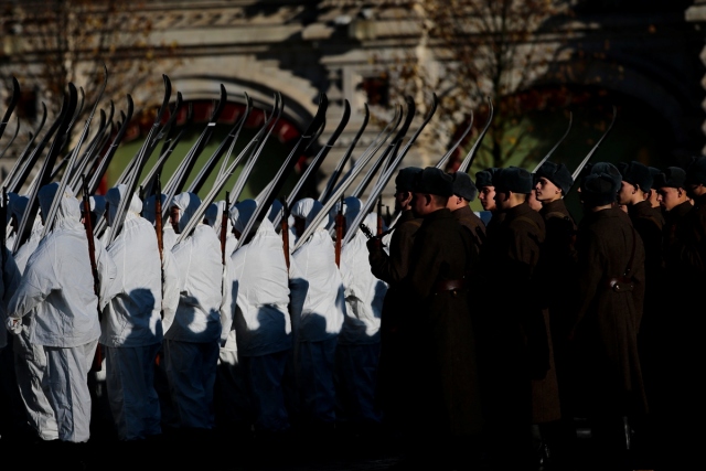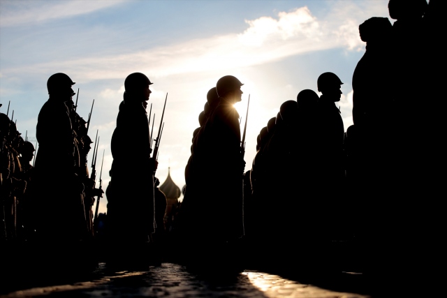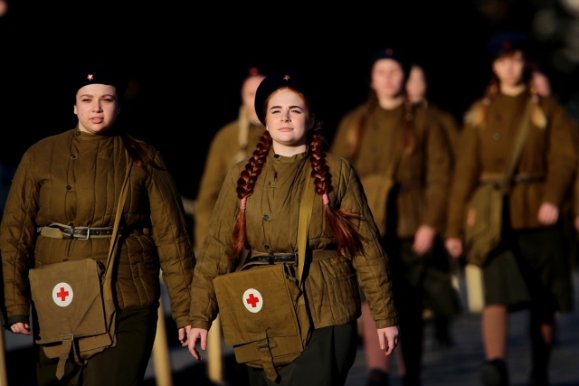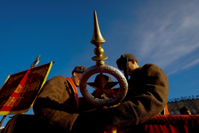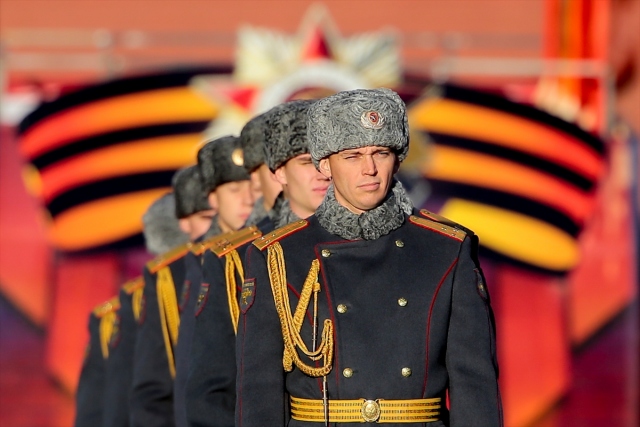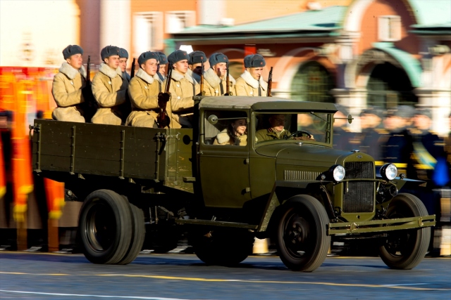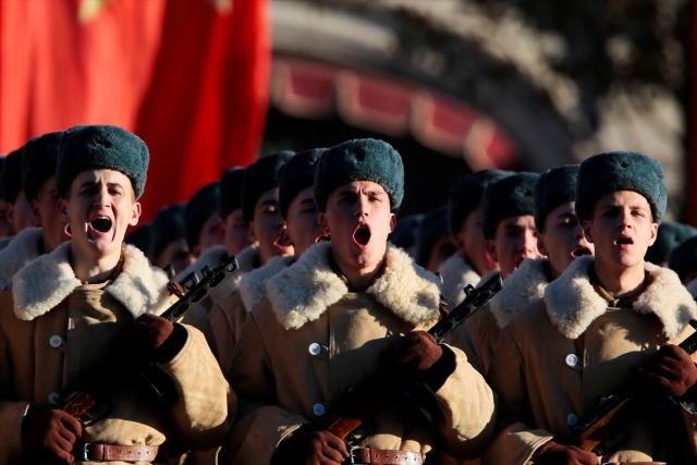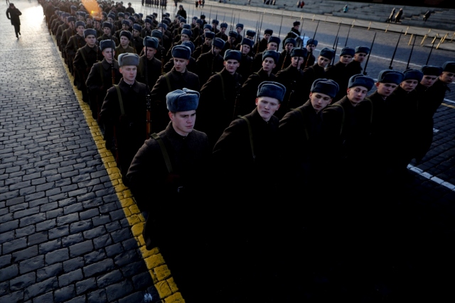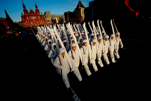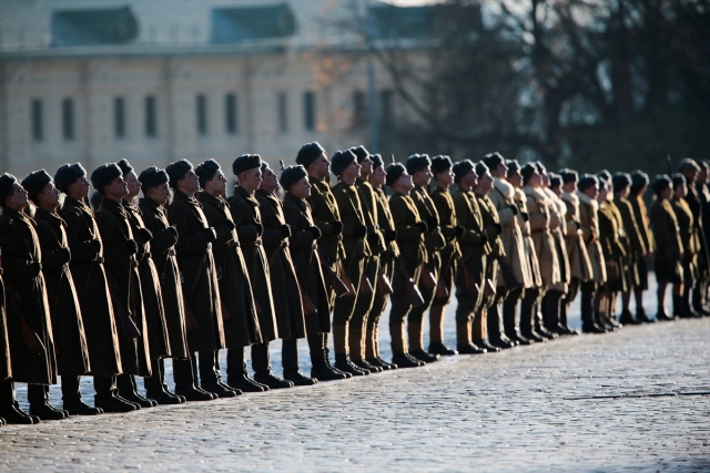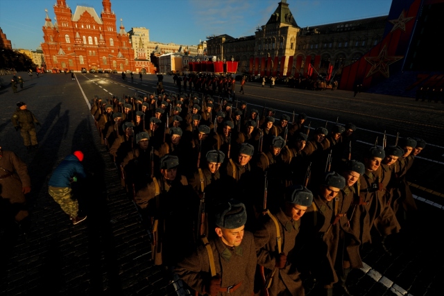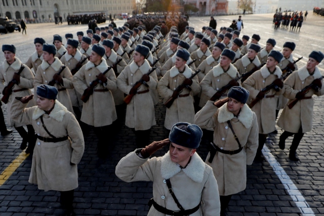 Kızıl Ordu'nun 7 Kasım 1941'de Kızıl Meydan'da toplanarak dönemin Nazi Almanya'sına karşı taarruza geçişinin yıl dönümü nedeniyle Moskova'da temsili askeri geçit töreni öncesi prova yapıldı. Kızıl Meydan'da düzenlenen geçit törenine Başkanlık Muhafız Alayı askerleri dönemin Sovyetler Birliği ordusu üniformalarıyla katıldı.