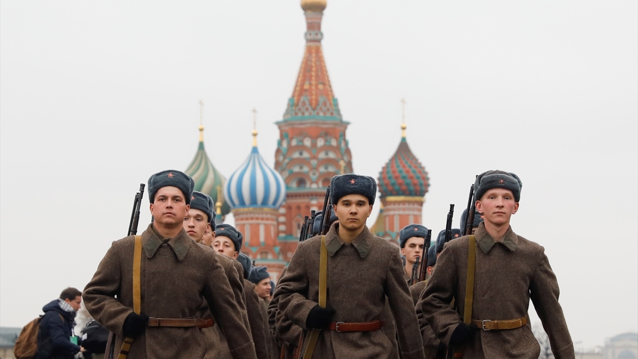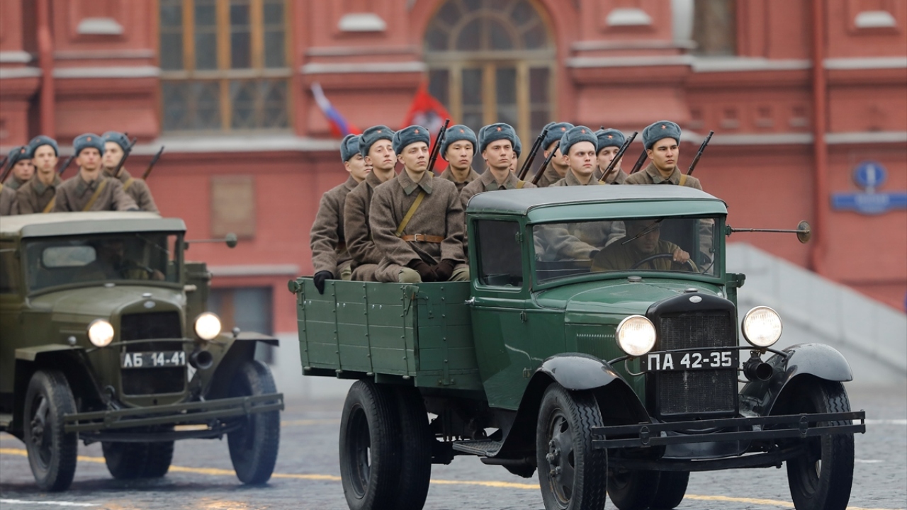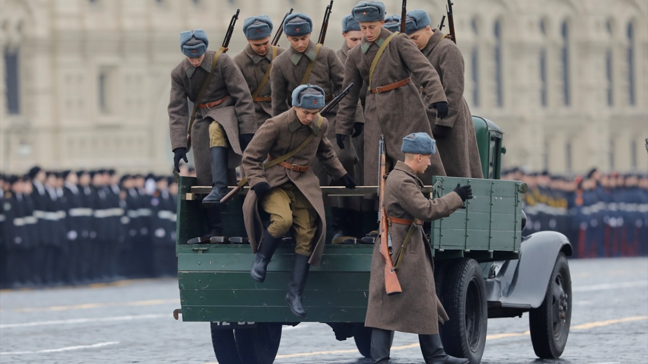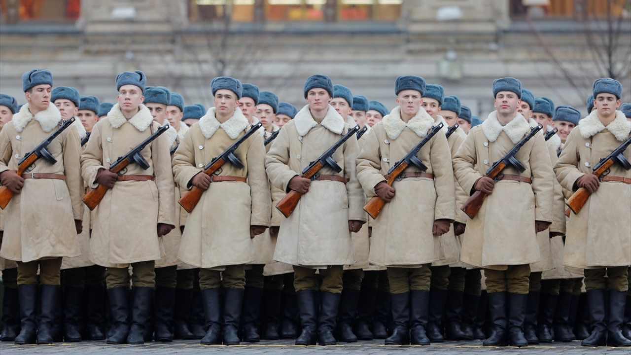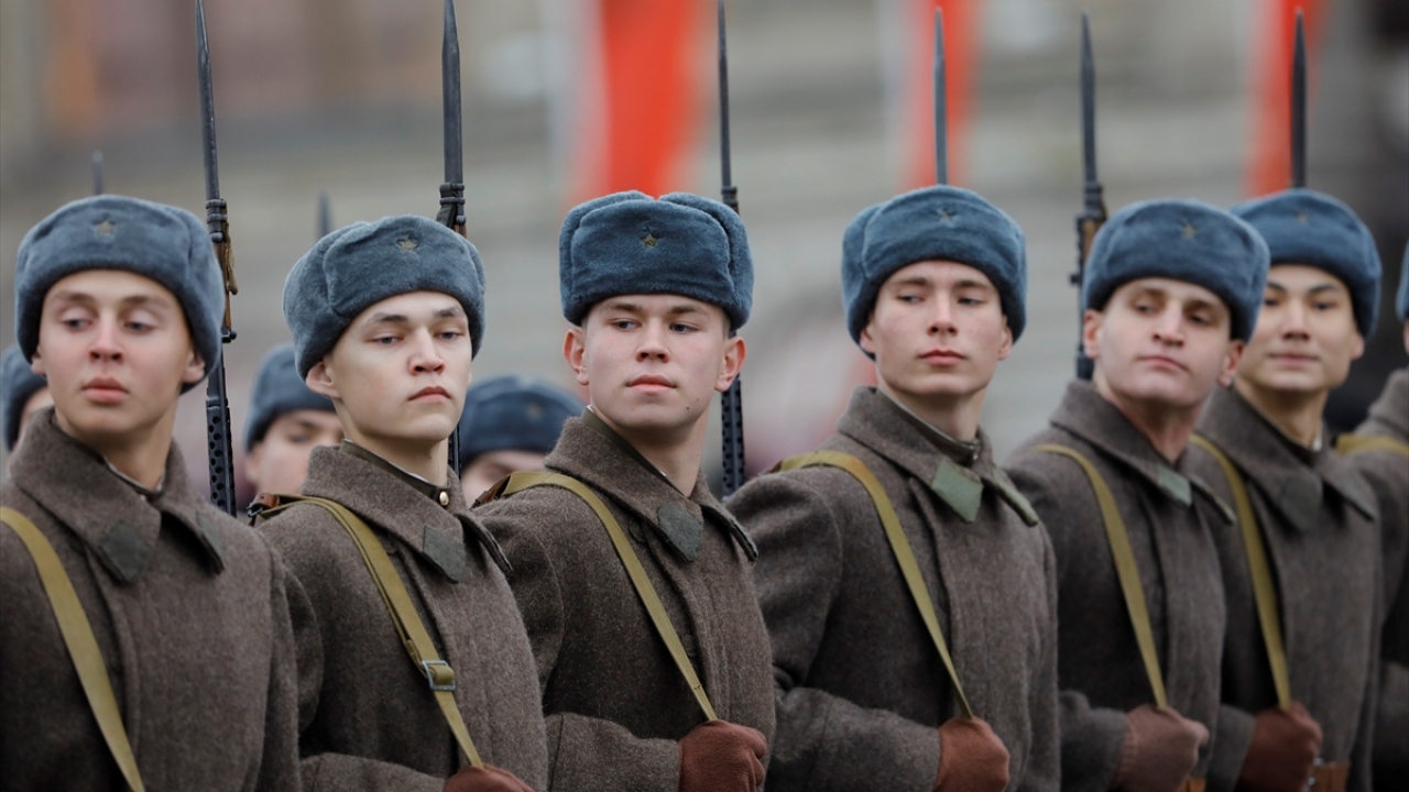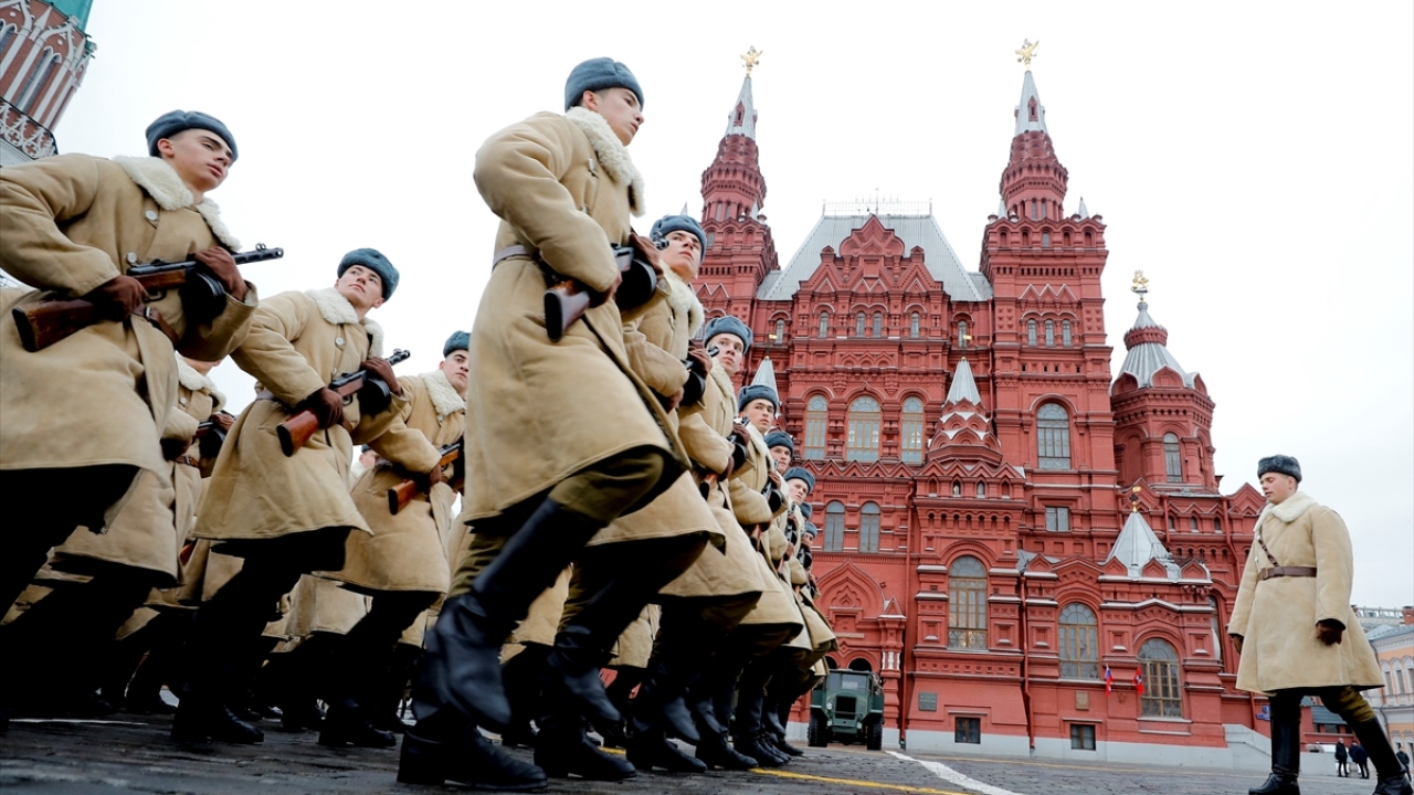 Kızıl Ordu'nun 7 Kasım 1941'de Kızıl Meydan'da toplanarak dönemin Nazi Almanya'sına karşı taarruza geçişinin yıl dönümü nedeniyle Moskova'da temsili askeri geçit töreni öncesi prova yapıldı.