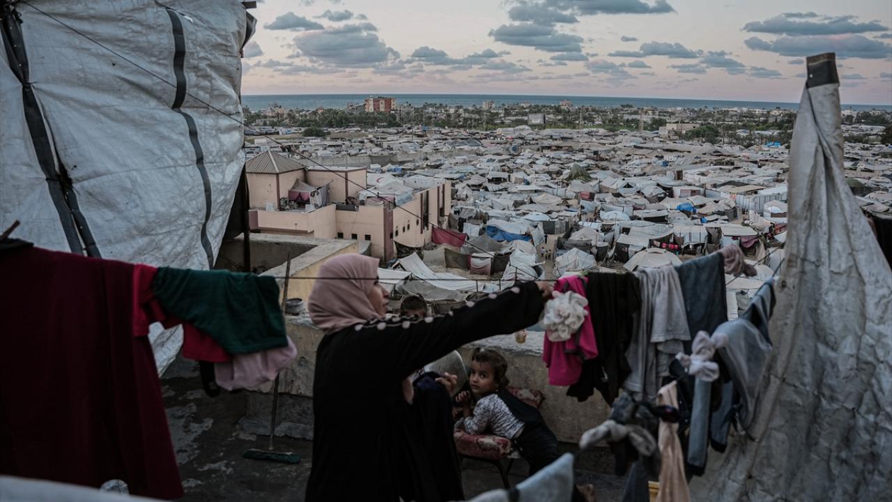 Evlerini kaybeden binlerce Filistinli, Han Yunus’un “insani bölge” ilan edilen ancak defalarca bombalanan El-Mevasi bölgesindeki çadırlarda hayatta kalmaya çalışıyor.