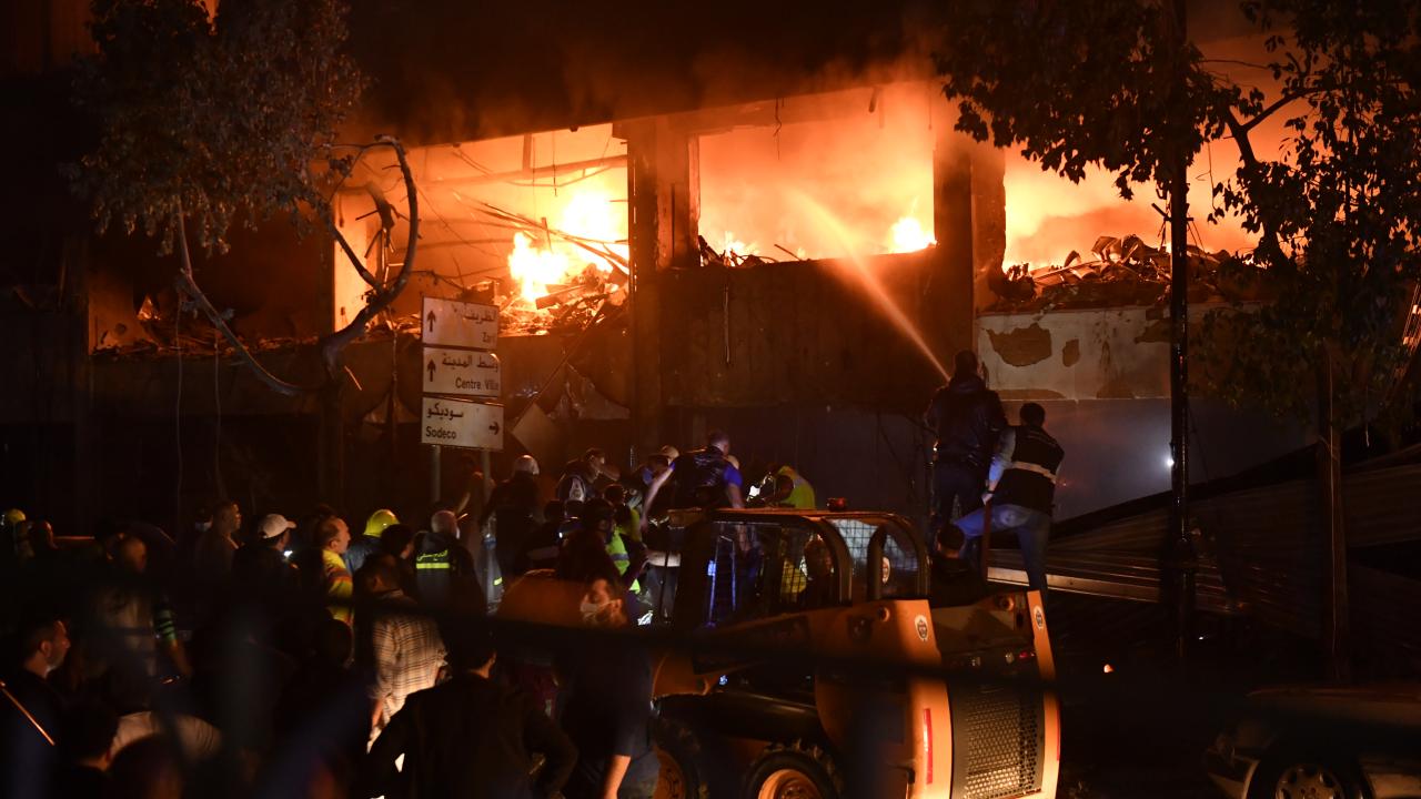 Katil İsrail ordusu, Lübnan'ın başkenti Beyrut'un merkezindeki Mar Elias bölgesine hava saldırısı düzenledi. Saldırı sonucu hedef alınan binada yangın çıktı.