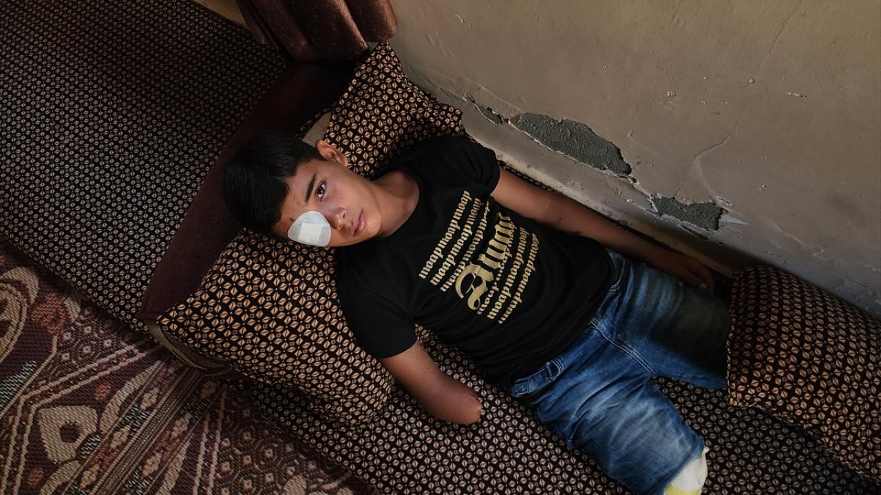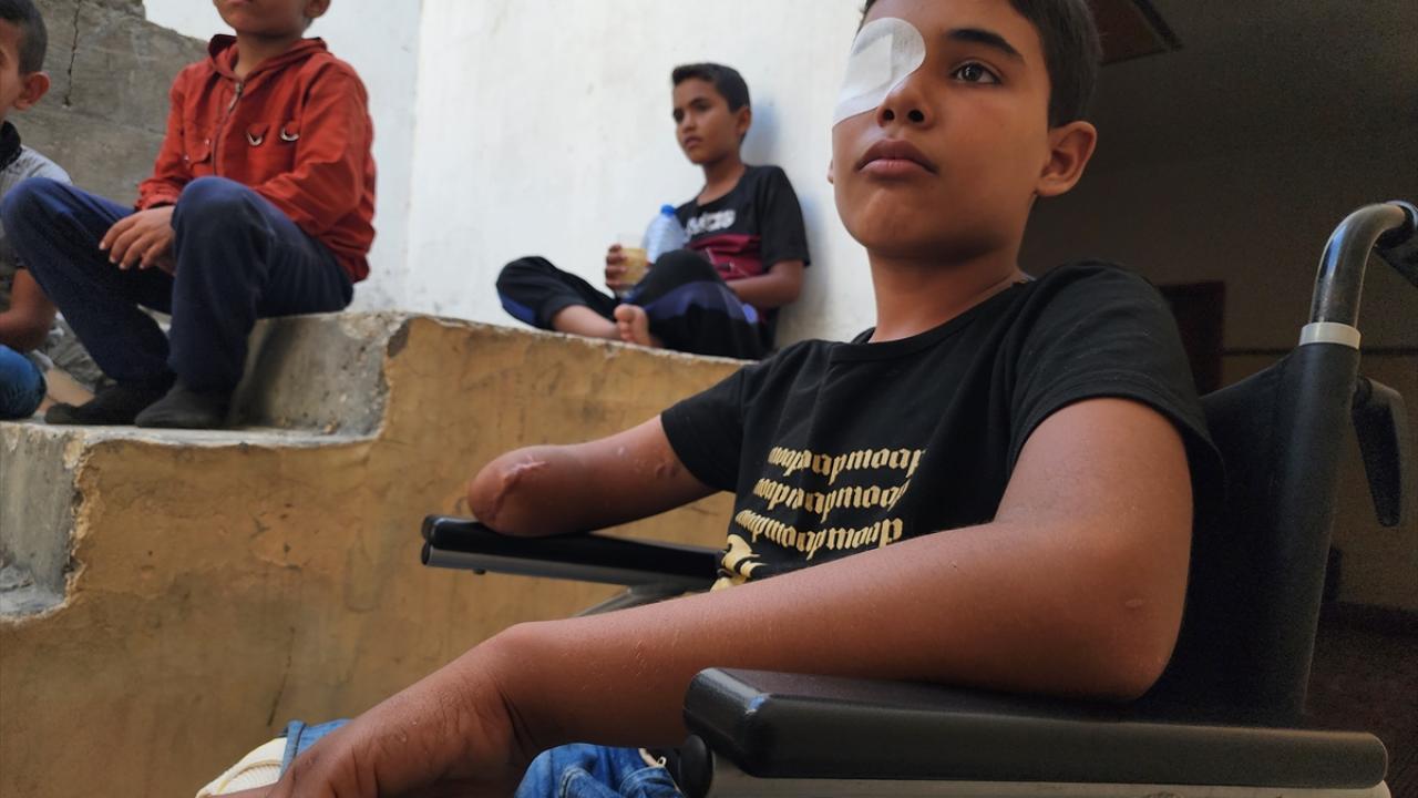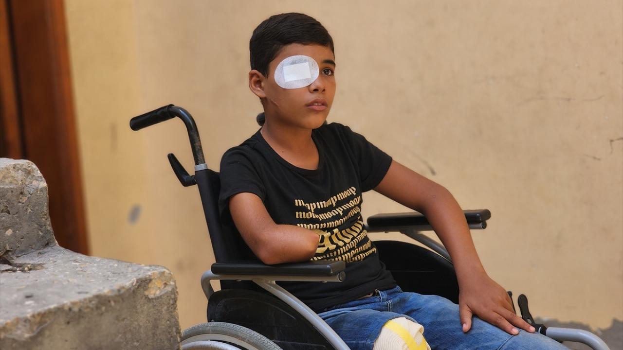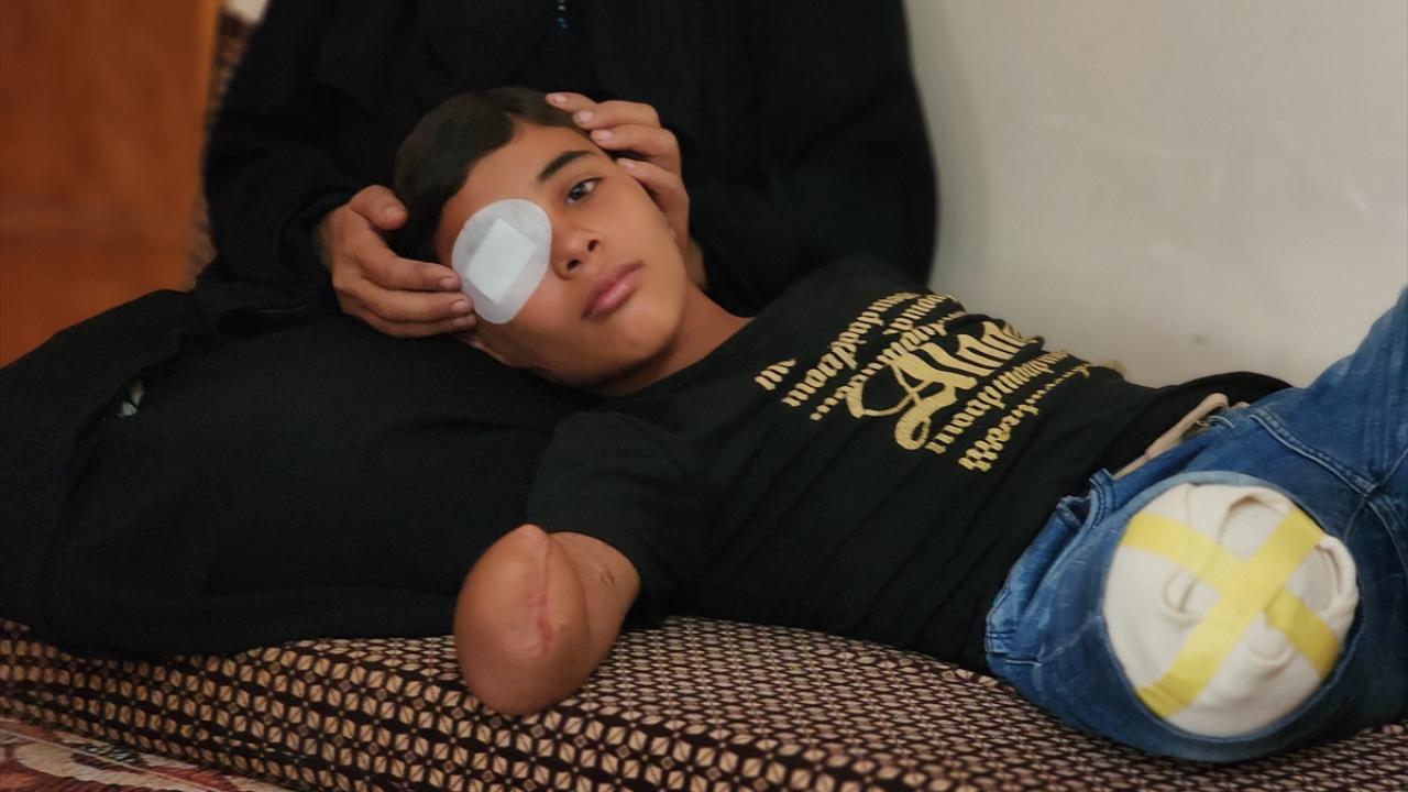 İsrail ordusunun Gazze Şeridi'nin güneyindeki Han Yunus'un Ma'an bölgesine düzenlediği saldırılarda ağır yaralanan 13 yaşındaki Filistinli çocuk Wahid Izhian Al-Ghalban, bir ayağını, elini ve gözünü kaybederek tekerlekli sandalyeye mahkum kaldı.