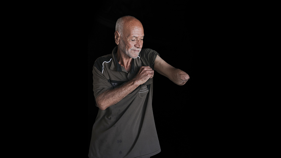 60 yaşındaki Filistinli Shehda Ahmed Al-Daas, ailesine su almak için Gazze kentinin Şeyh Rıdvan semtindeki evinden çıkarken maruz kaldığı hava saldırısı sonucu kolunu kaybetti ve vücuduna şarapnel parçaları isabet etti.
