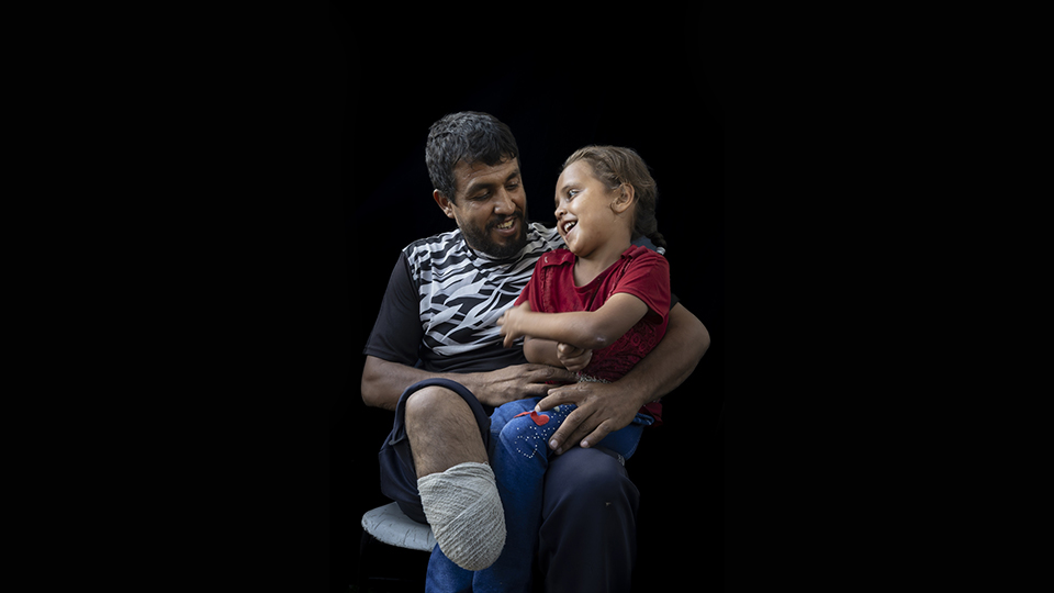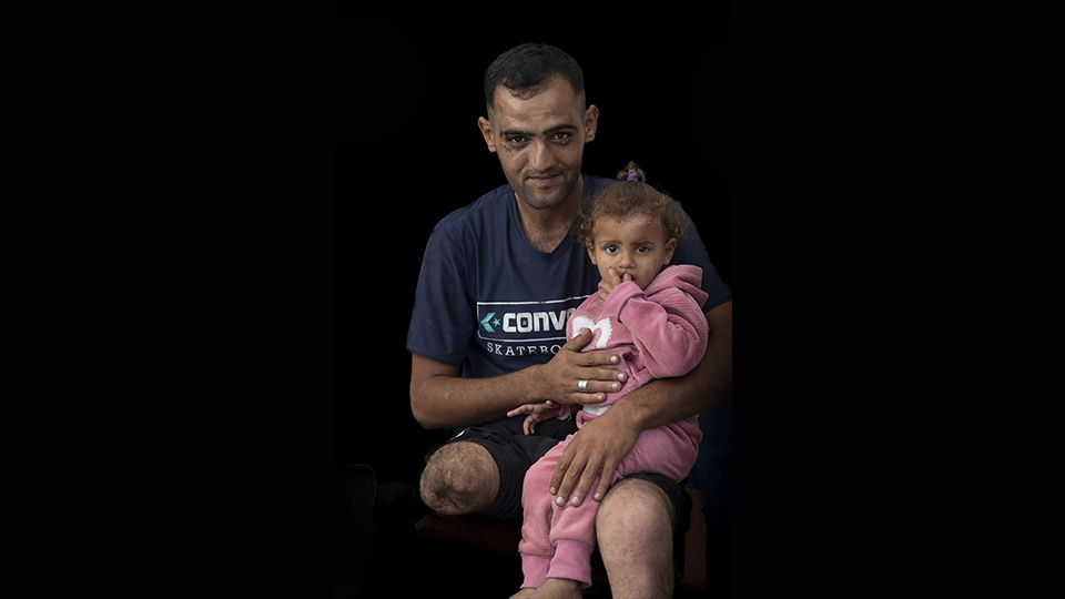 Filistinli Mohammad Mahmoud Joudeh, Refah kentindeki evine yapılan saldırı sonucu bacağını kaybetti ve vücuduna şarapnel parçaları isabet etti.