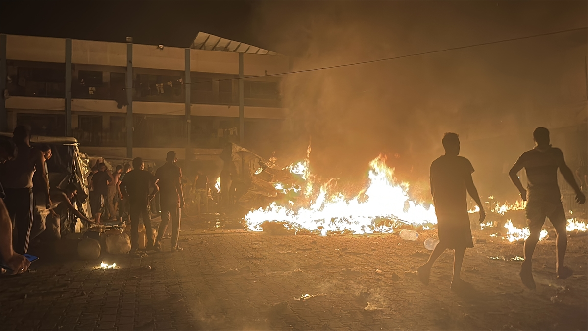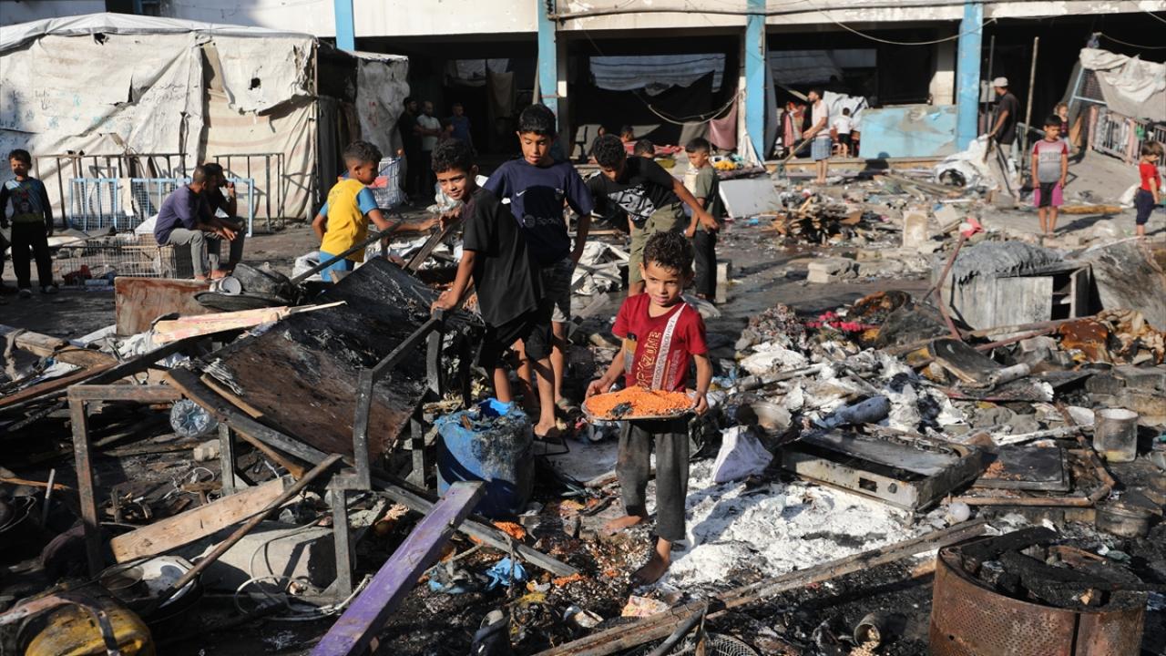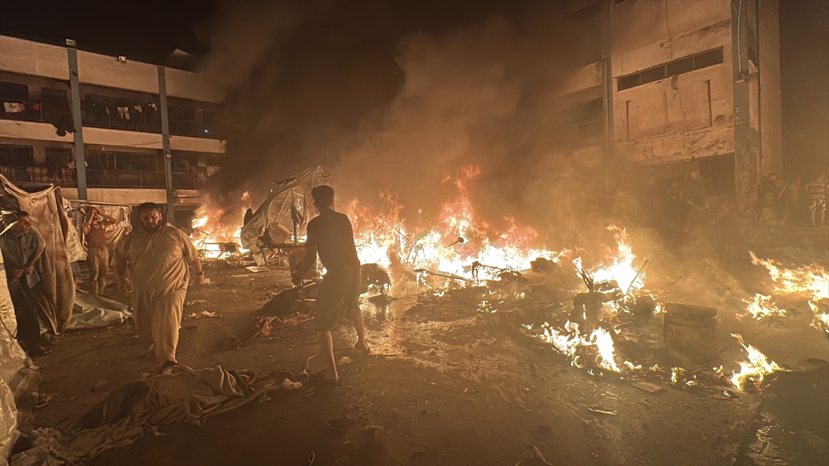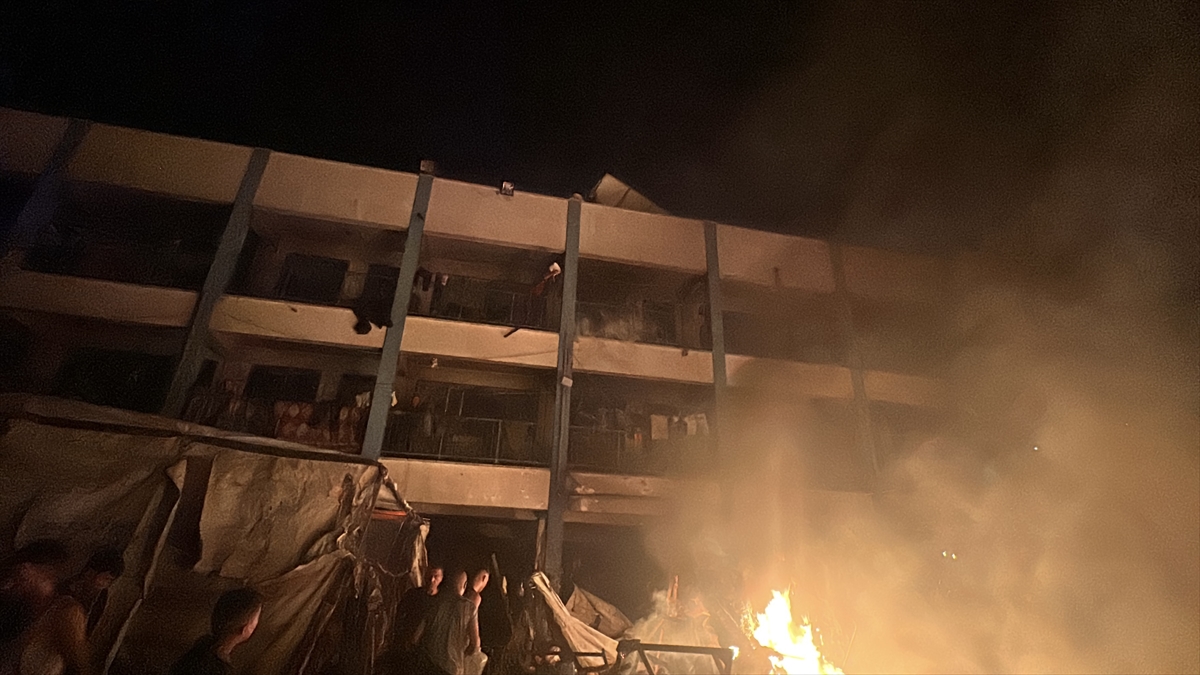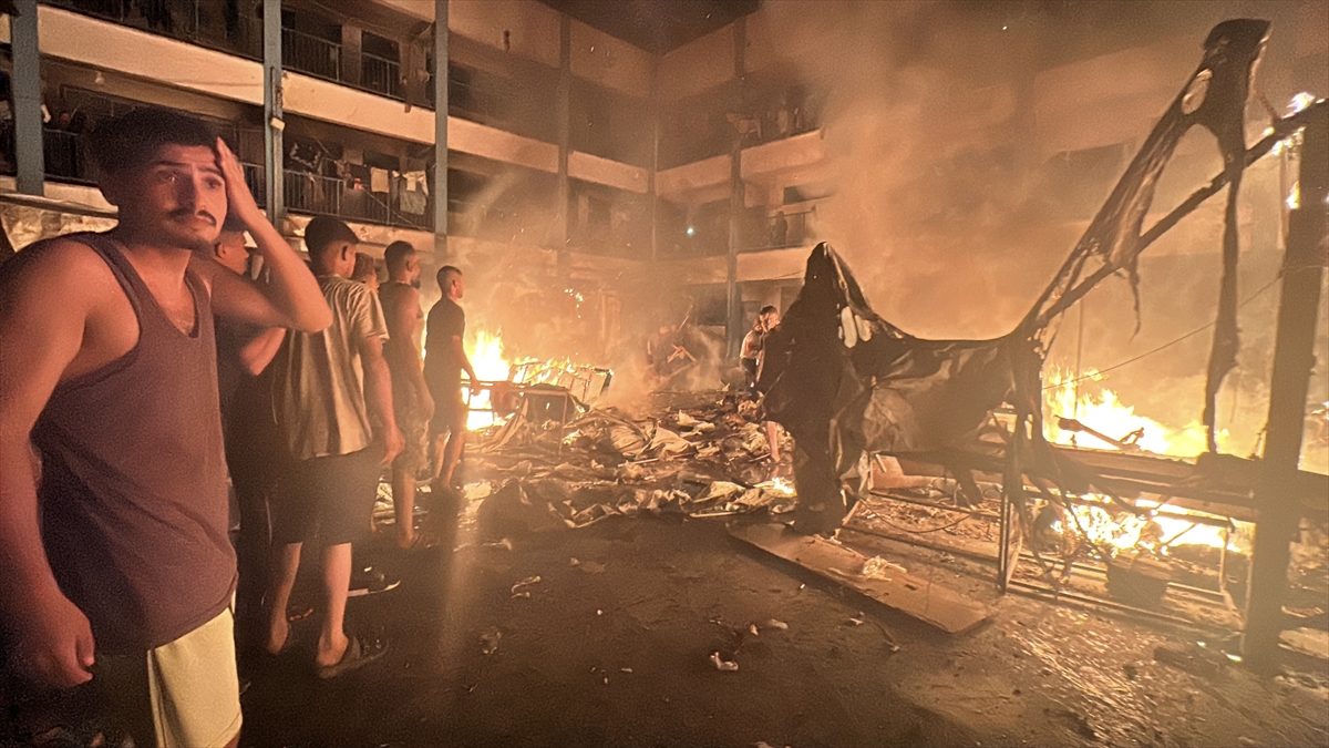 Soykırımcı İsrail ordusuna ait insansız hava araçlarının Gazze Şeridi’nin orta kesimindeki Bureyc Mülteci Kampı’nda yer alan ve yerinden edilen Filistinlilerin sığındığı Ebu Hilo Okulu’nu hedef alması sonucu bölgede büyük bir yangın çıktı.