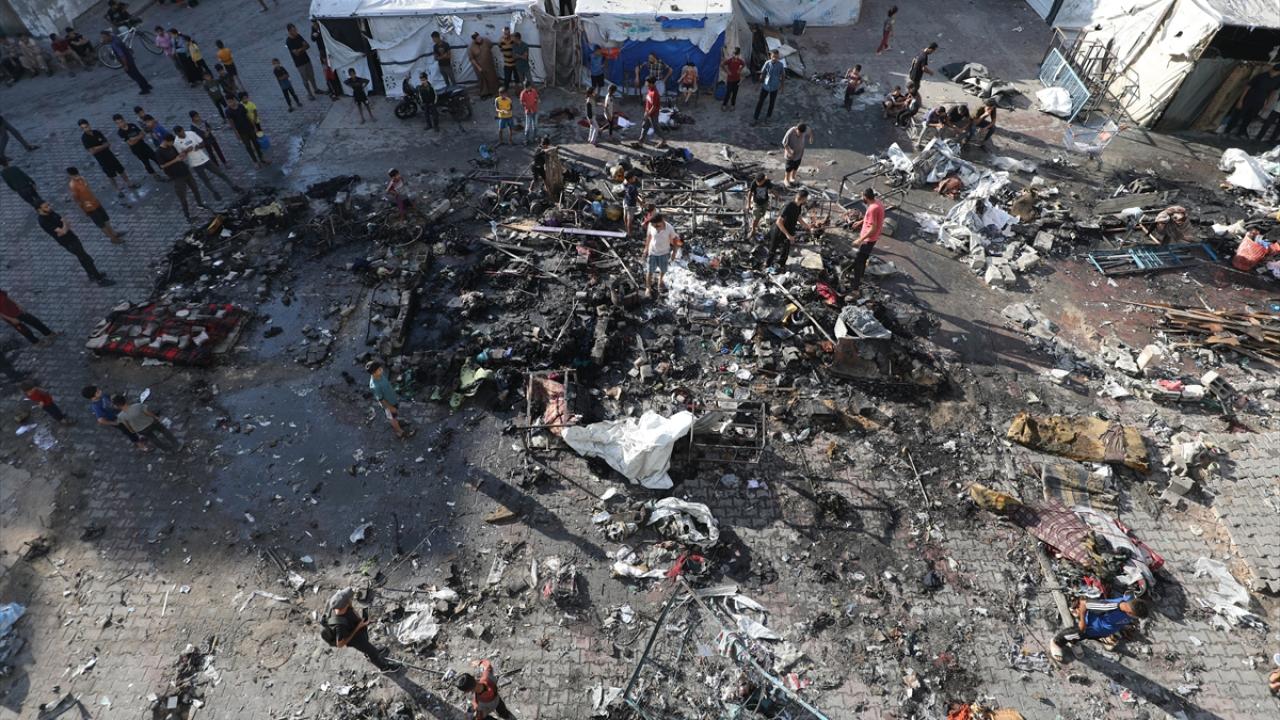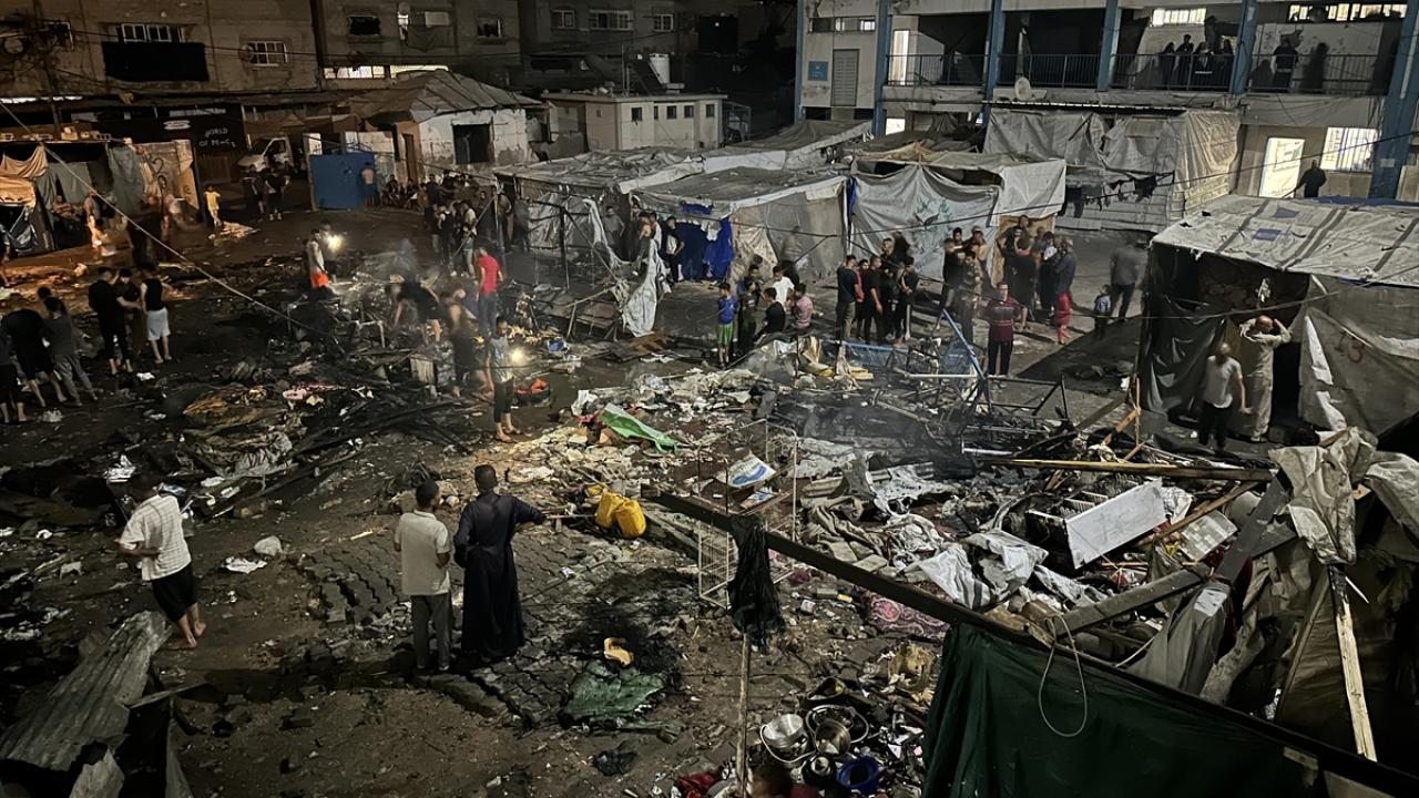 Güvenli bölge olarak kullanılan okul saldırı sonrası enkaza dönerken, çok sayıda Filistinli hayatını kaybetti ve yaralandı.