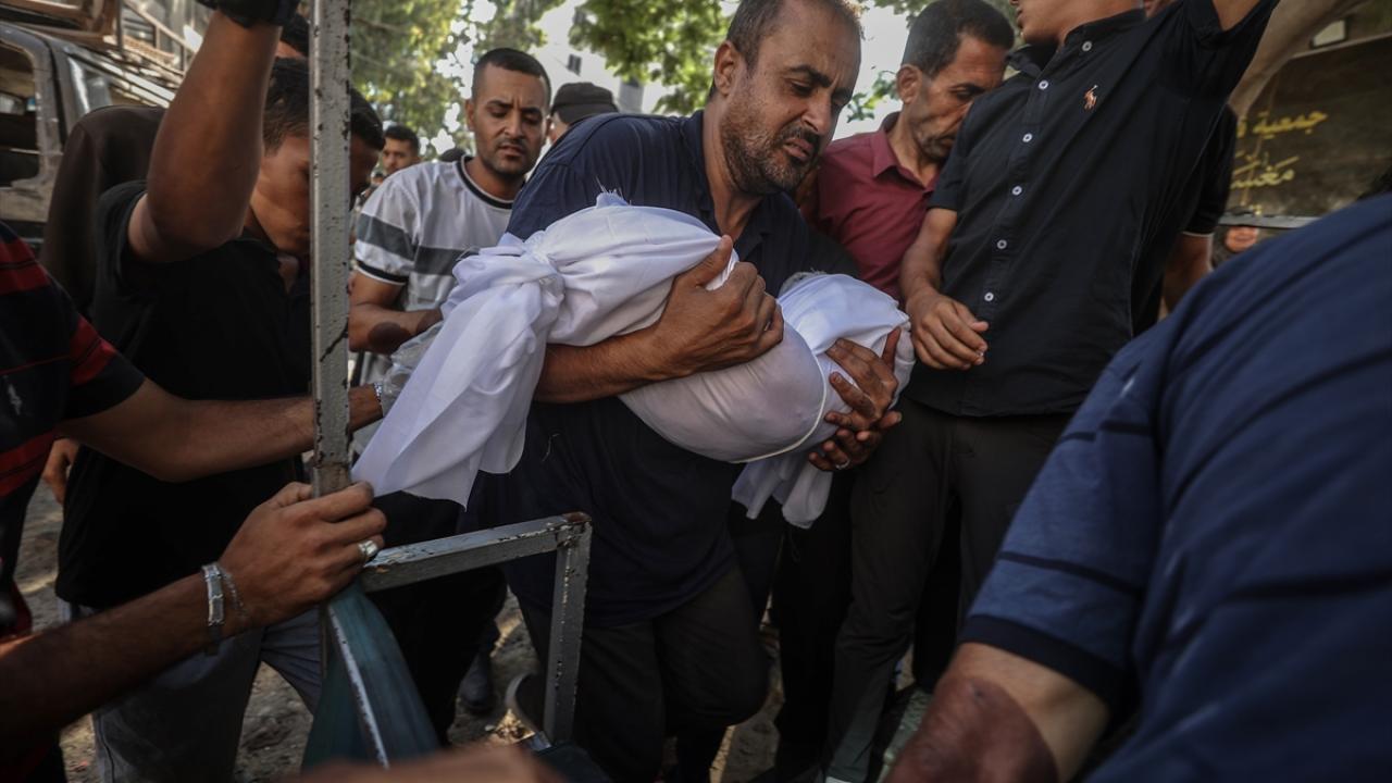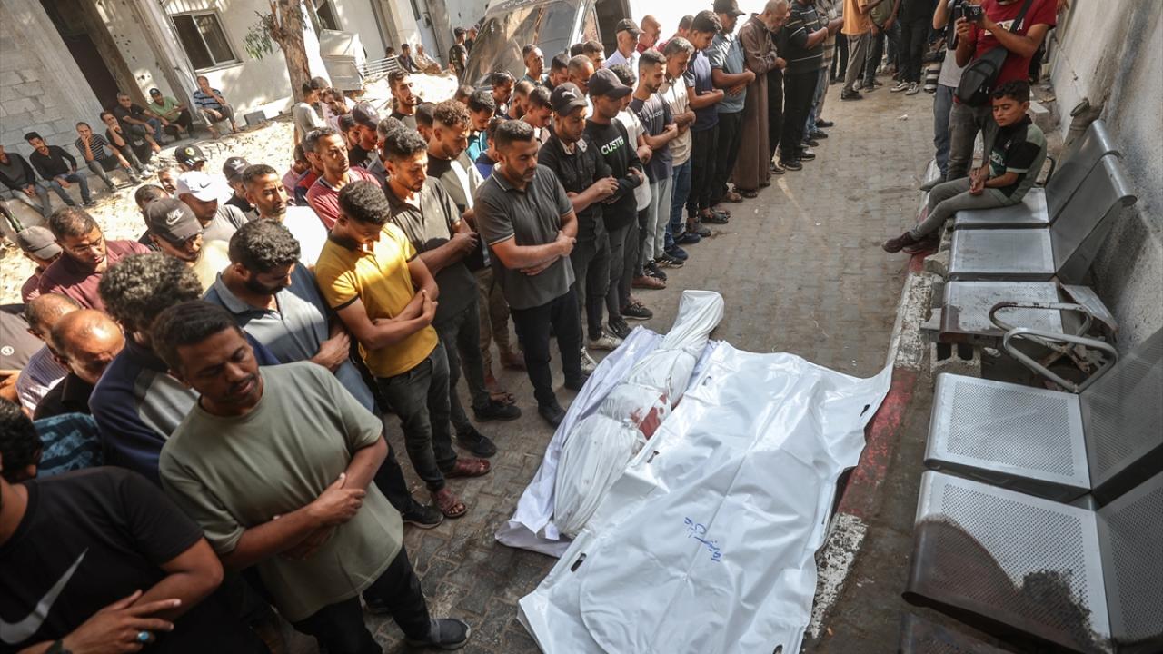 İsrail ordusunun sabah saatlerinde Gazze kentine düzenlediği hava saldırılarında hayatını kaybeden Filistinliler için Şifa Hastanesi’nde cenaze töreni düzenlendi.