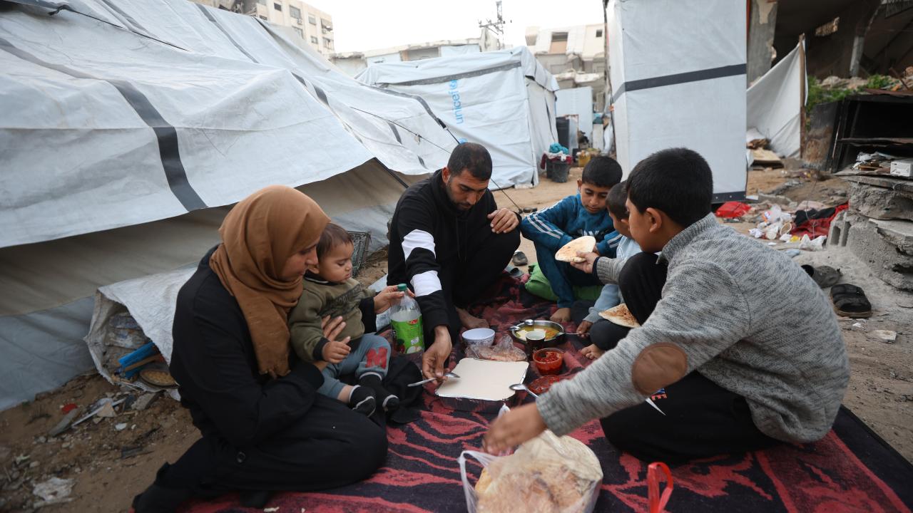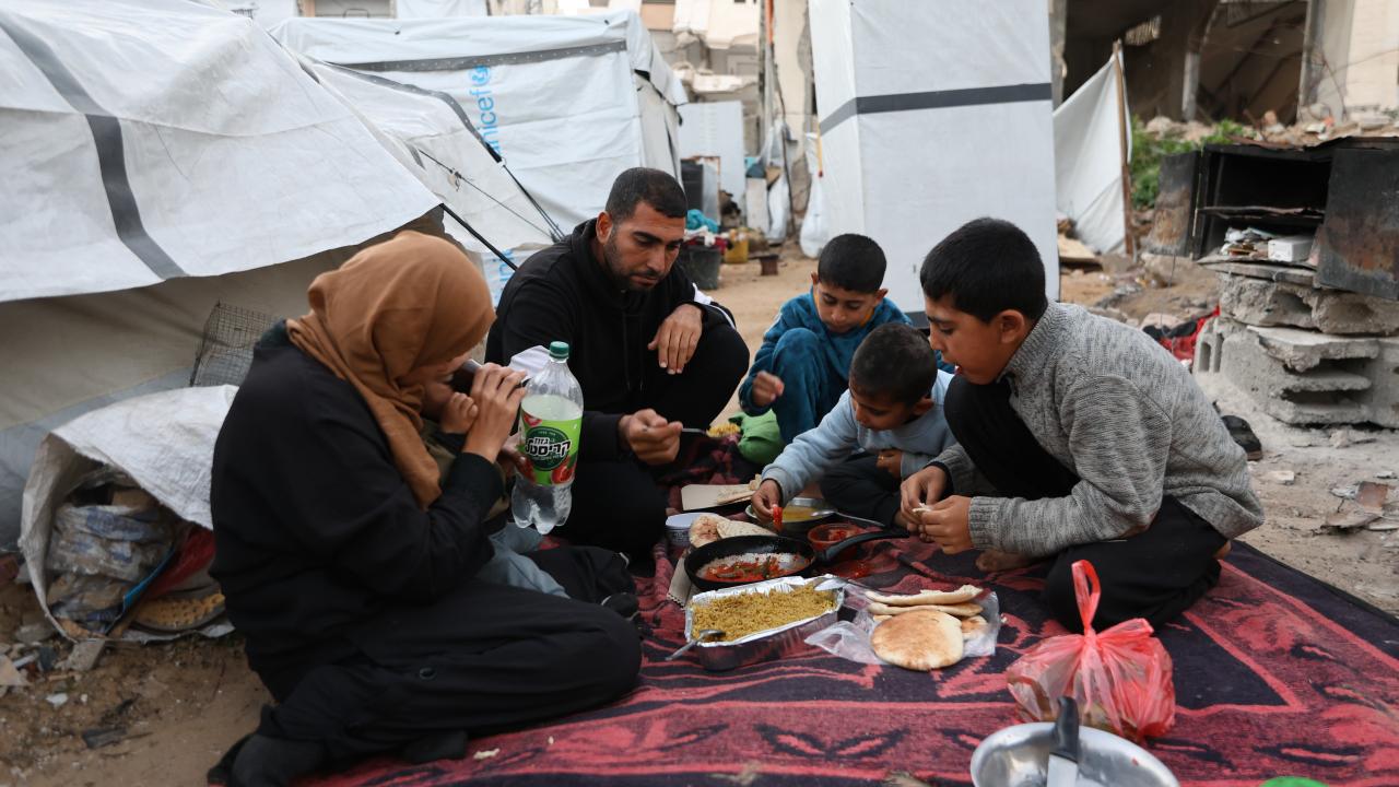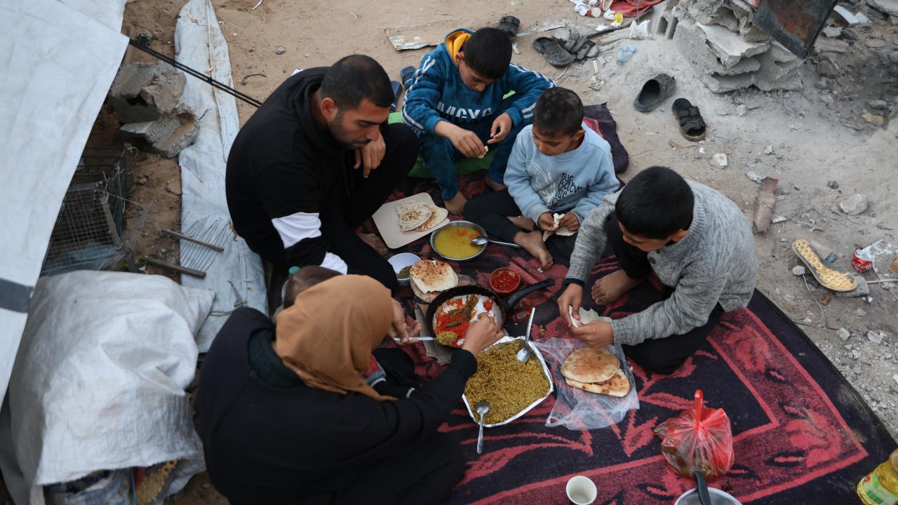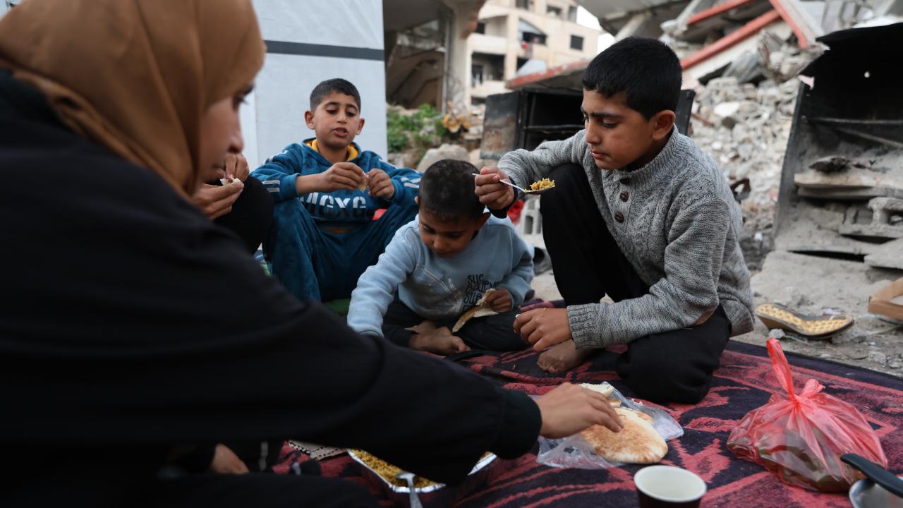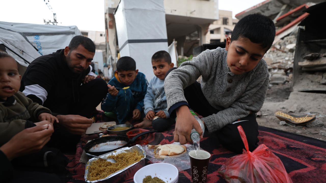 Ramazan ayını buruk karşılayan Gazzeli aile, temin edebildiği kısıtlı gıda malzemeleriyle çocuklarıyla birlikte iftar yemeği hazırladı.