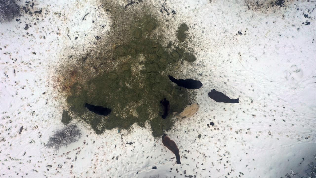 Spil Dağı'ndaki yaban hayvanlarına yem bırakıldı