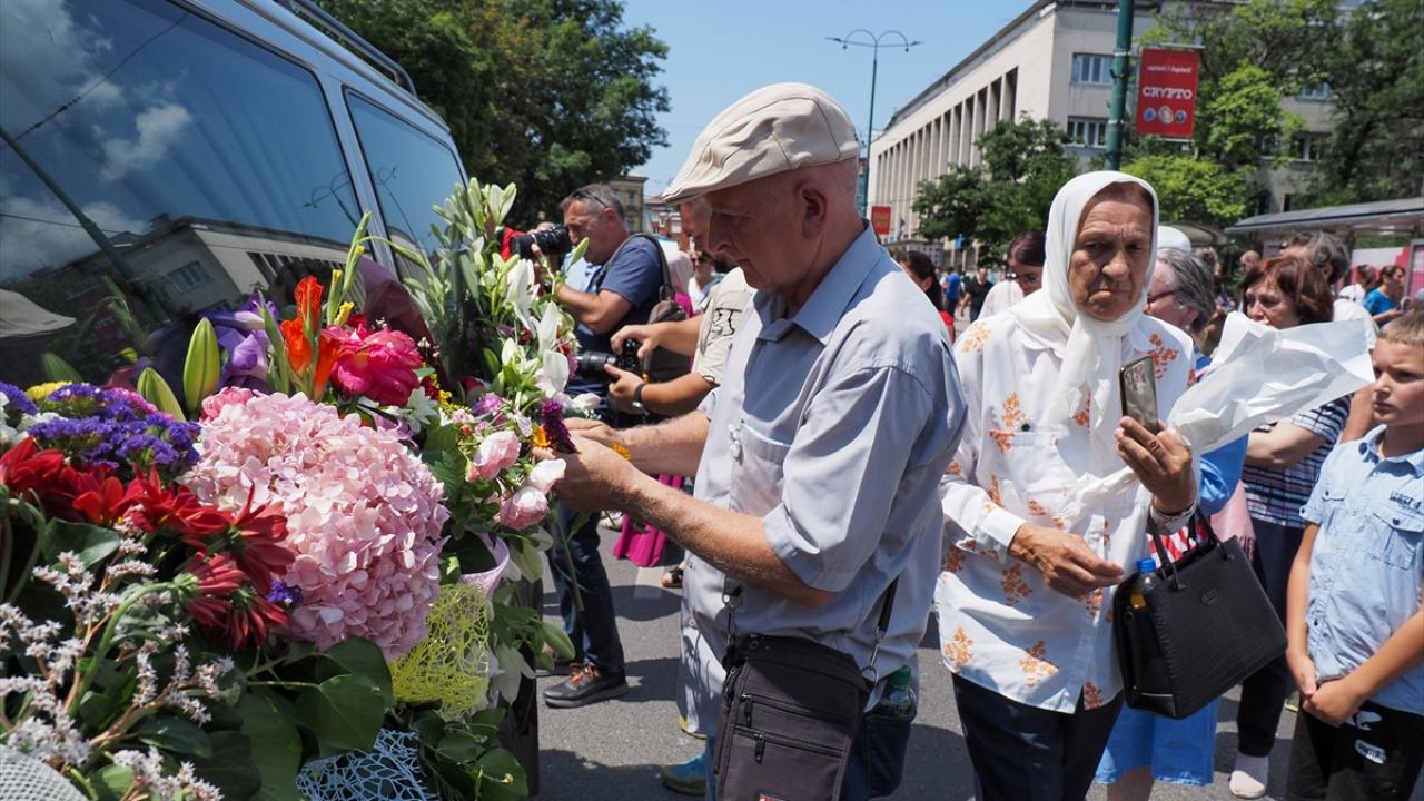 Cenazeleri taşıyan konvoy, geçen yıllarda olduğu gibi önce Bosna Hersek Cumhurbaşkanlığı binası önünde durdu. Devlet yetkilileri ve yüzlerce Saraybosnalı, 14 kurbanın cenazesini taşıyan araçlara çiçek bırakarak dua etti.
