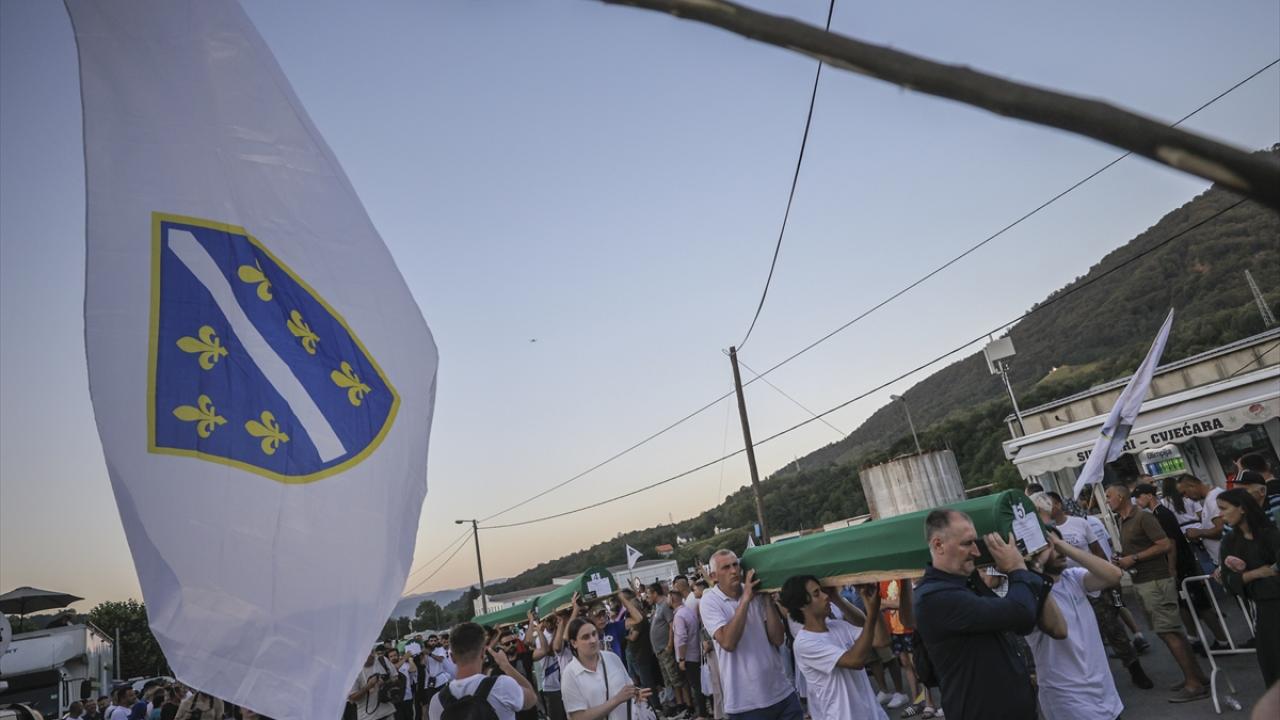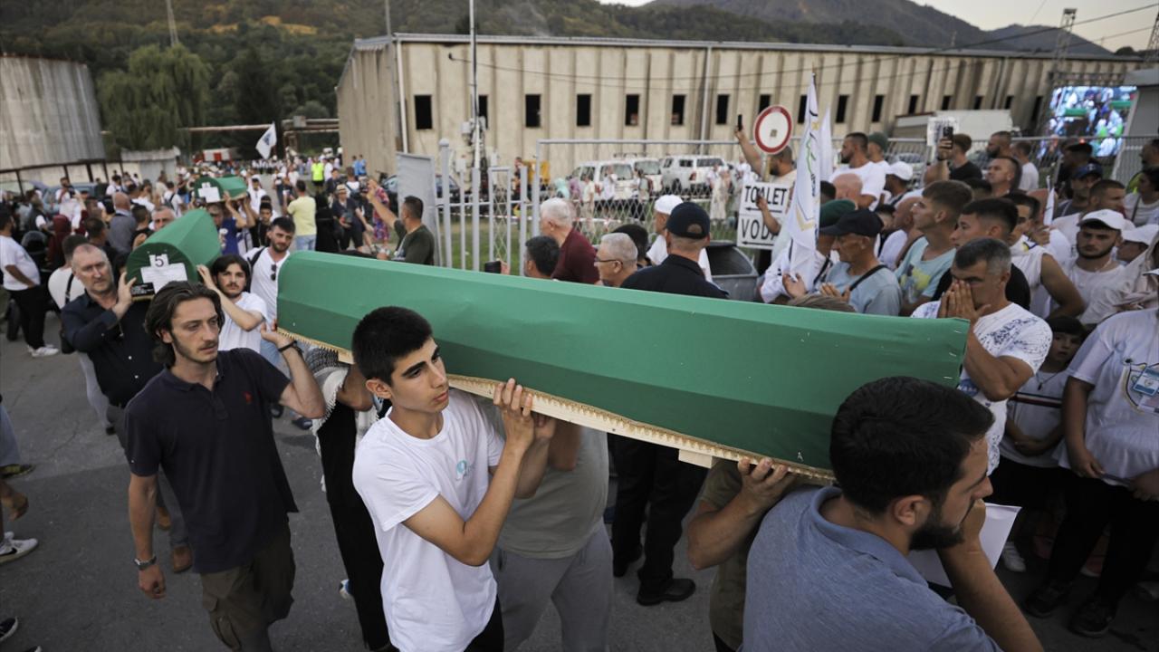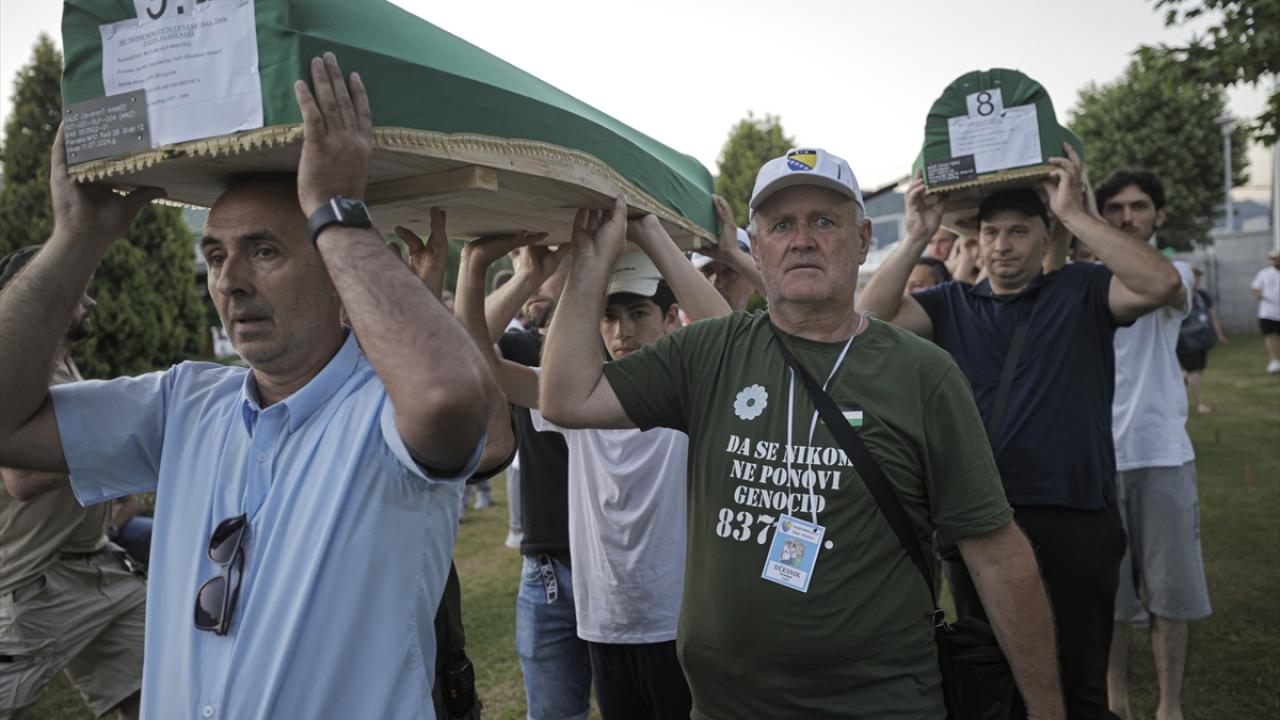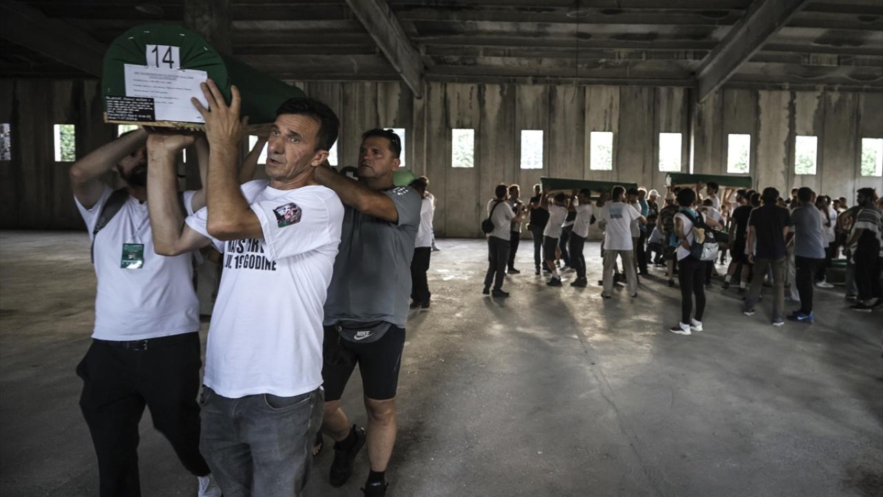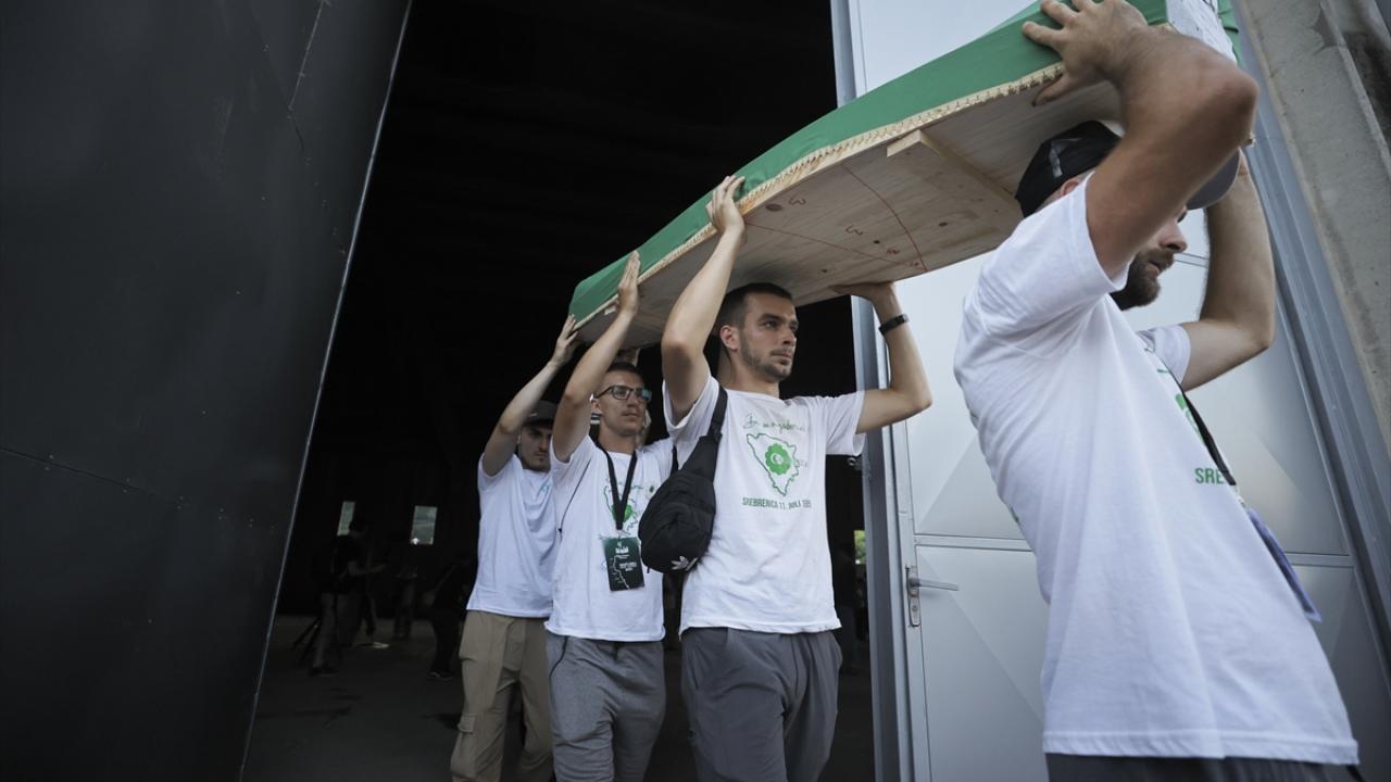 Sırp güçlerince en az 8 bin 372 Boşnak sivilin öldürüldüğü soykırımın 29`uncu yıl dönümünde toprağa verilecek kurbanların cenazeleri, savaşta Birleşmiş Milletler (BM) askerlerinin üs olarak kullandığı eski akümülatör fabrikasından çıkarılarak omuzlar üzerinde mezarlığa getirildi.